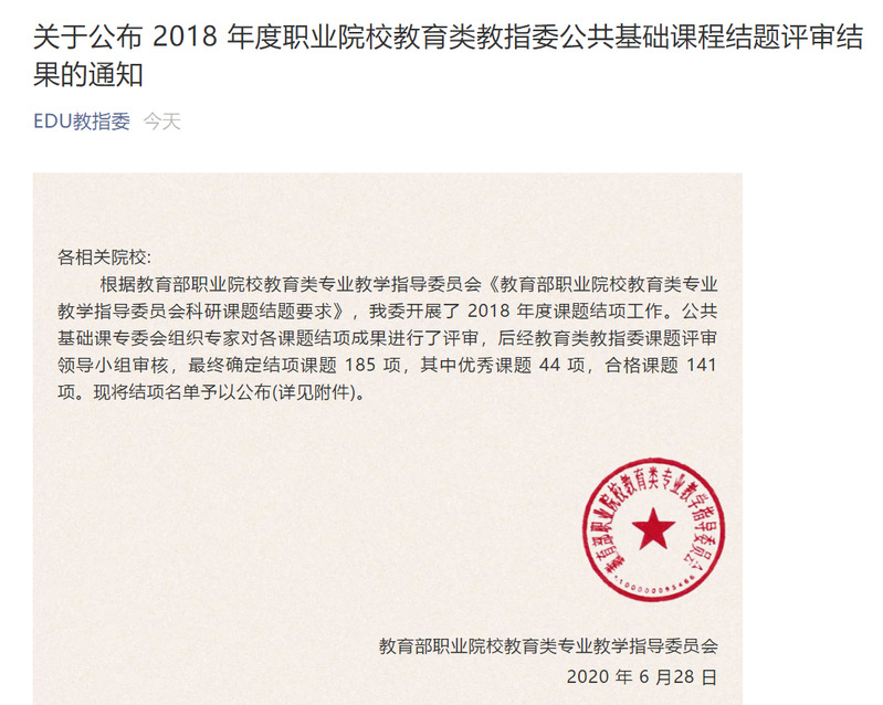 我校兩項(xiàng)課題順利通過教育部職業(yè)院校教育類專業(yè)教學(xué)指導(dǎo)委員會(huì)科研課題結(jié)題