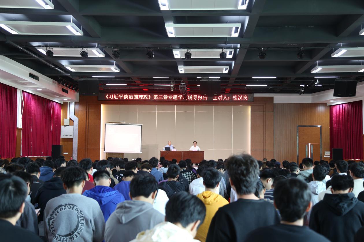 桂教授的專題輔導之后,學校黨委書記林偉健作了講話。林書記認為,桂教授深入淺出、形象生動地為我們做了一場精彩的輔導報告。此次報告既是一場對廣大師生的專題輔導,又是一次思政課的學習與升華,更是一次對學生人生的指導。我們一定要全面系統(tǒng)領會,及時跟進學習,深入鉆研進去。在此基礎上,把習總書記新思想貫徹到實踐中,真正做到學懂、做通、落實。