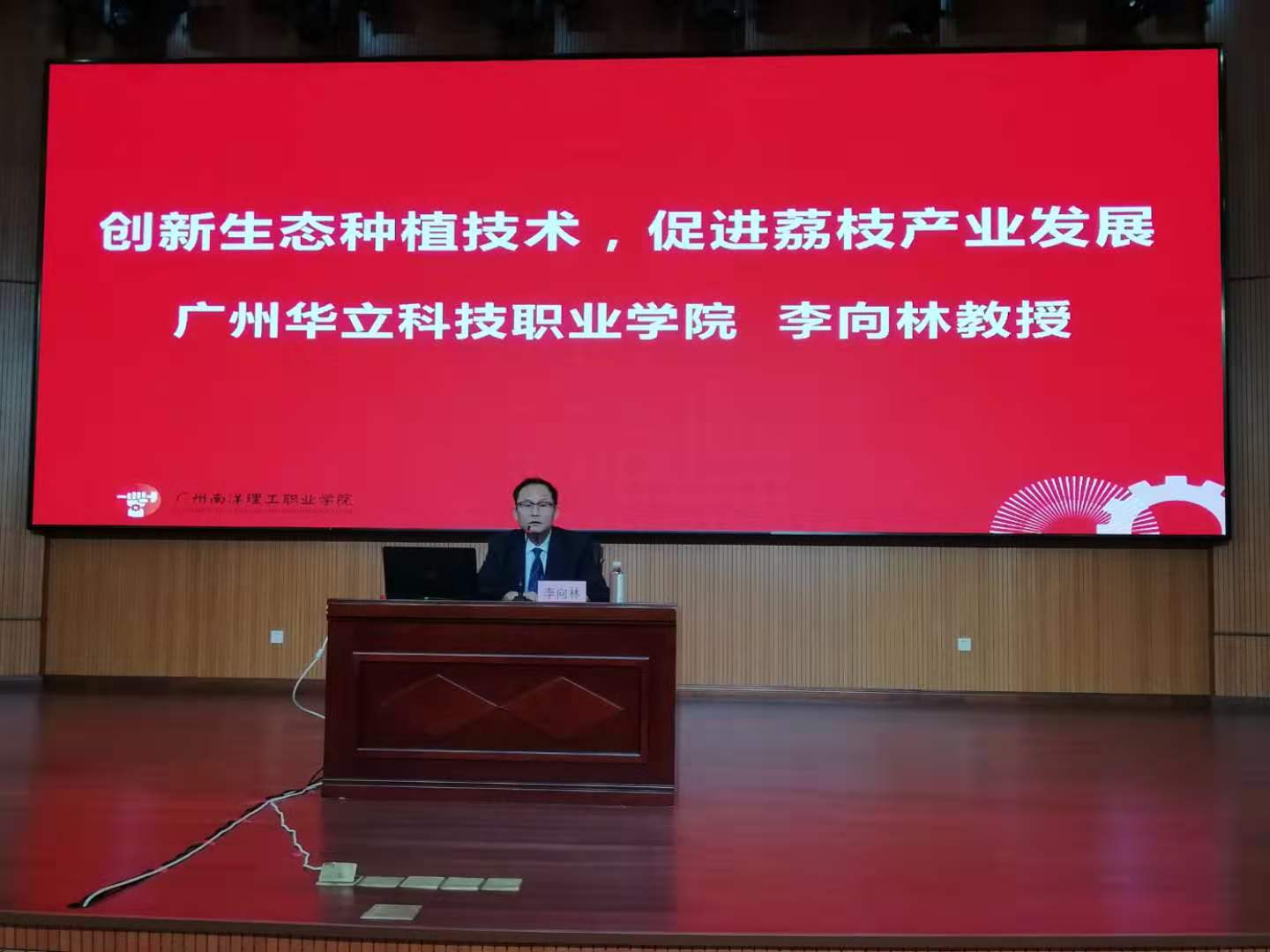 鑒于我校在廣東省鄉(xiāng)村振興和科技扶貧工作中的優(yōu)異表現(xiàn),聯(lián)盟邀請我校沉香繁育技術(shù)研究所所長,廣東省農(nóng)村科技特派員李向林教授做題為《創(chuàng)新生態(tài)種植技術(shù),促進荔枝產(chǎn)業(yè)發(fā)展》的主旨報告。另外一位受邀報告專家為清華大學(xué)中國農(nóng)村研究院副院長張紅宇博士,此次李向林教授代表學(xué)校科協(xié)進行的科普宣讀,推廣了華立品牌,增進了校際交流,贏得了與會專家和學(xué)者的一致好評。