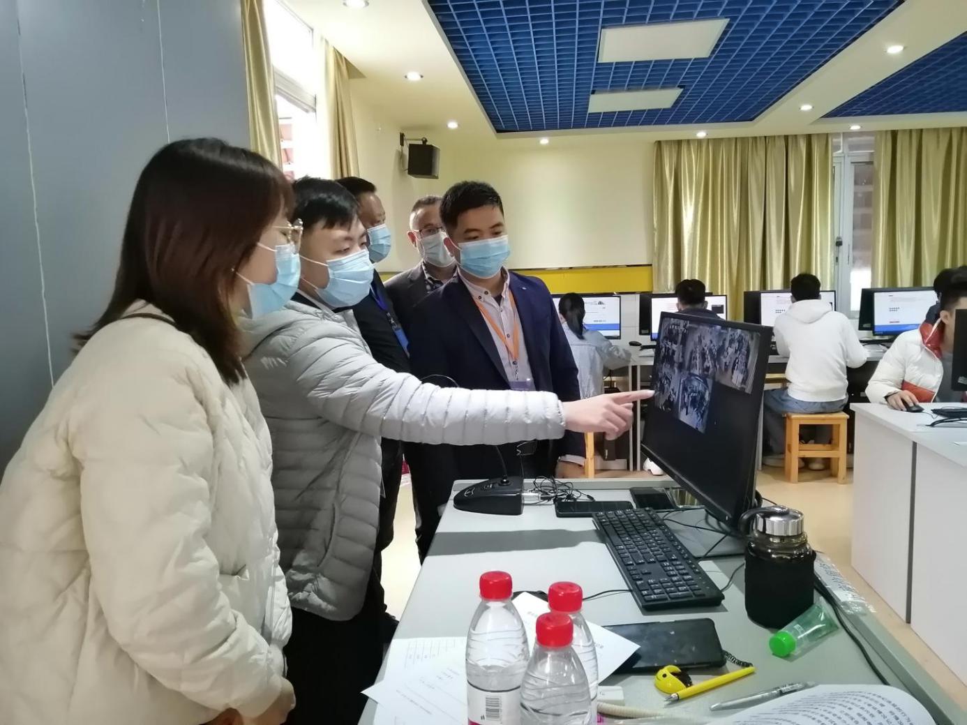 學院領導及考試中心巡考人員查看監(jiān)控情況