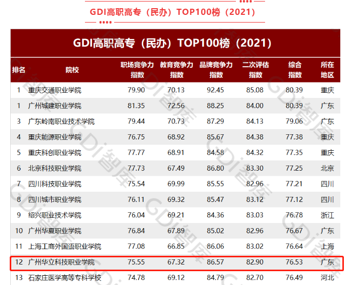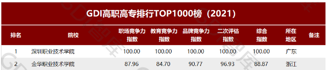 重磅!GDI高職高專排行TOP1000榜出爐,我校名列省內(nèi)第四