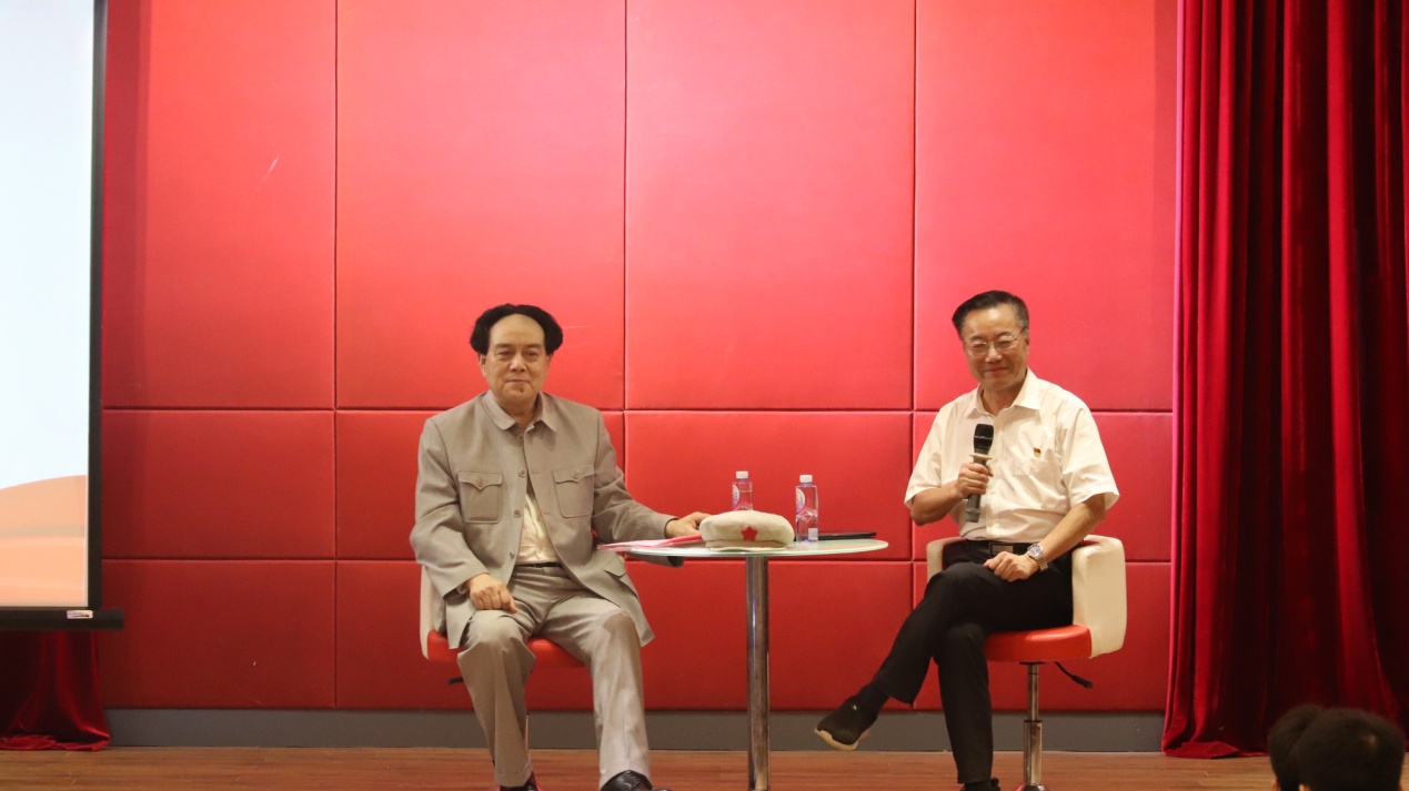 本次黨委書記思政第一課,形式獨特,別開生面。黨委書記林偉健教授與“毛主席”同登臺,以對話方式講課:解讀《為人民服務》,理解共產黨員的宗旨意識。開始講課時,琴石老師模仿毛澤東主席的湖南口音,先朗誦了毛主席的詩詞《七律.長征》《清平樂.六盤山》,然后表演了“人民萬歲”的情景片段,頓時歡聲雷動,讓師生們情不自禁產生了紅色回憶。接著,林偉健書記簡要介紹本次思政課的教學內容、目的要求,并向大家強調了開展黨史學習教育、慶祝建黨一百周年的重大意義。隨后,琴石老師朗讀了毛主席的著作《為人民服務》;林書記介紹了《為人民服務》這篇著作產生的背景和張思德同志的生平及其在平凡崗位上為人民兢兢業(yè)業(yè)做貢獻的感人事跡。林偉健書記和琴石老師共同引經據(jù)典,配合默契,相互補充,重點從為人民服務的宗旨意識、革命的生死觀和人生的價值、為了人民利益要堅持好的改正錯的、要善于開展批評與自我批評、要善于搞五湖四海團結一致共同奮斗等方面,為師生們生動詮釋了毛主席的《為人民服務》這一經典著作。林書記向師生們強調指岀:千秋偉業(yè),百年風華,我們一定要牢記中國共產黨曲折艱辛的輝煌歷史,要明確并樹立共產黨人的宗旨意識;當代大學生要把人民利益放在首位,要通過各種方式為人民服務,學好知識,報效社會,創(chuàng)造人生價值。