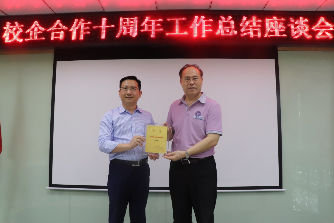 劉莊校長為德永信公司頒發(fā)校企合作十周年紀念牌匾