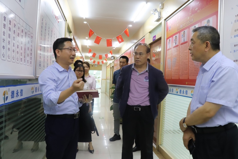 慶典前,公司領導陪同劉莊校長和馬龍海執(zhí)行校長參觀了德永信公司。冼朝卓總經(jīng)理在會上首先致辭,歡迎學校領導一行的到來,感謝學校對德永信公司的大力支持,并向我們介紹了德永信公司的發(fā)展歷程。馬龍海執(zhí)行校長對德永信公司創(chuàng)業(yè)16年的工作成就給予了極高的評價。認為德永信公司重視黨建工作和企業(yè)文化建設,重視團隊支撐和校企合作,形成了較強的凝聚力和可持續(xù)發(fā)展?jié)摿ΑJ陙硇F蠛献鞒尚э@著,希望未來在產(chǎn)教融合發(fā)展的道路上能走得更遠。