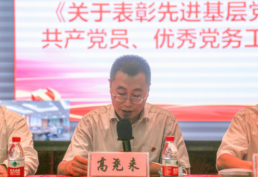 會上,舉行了表彰儀式。校領(lǐng)導(dǎo)為受表彰的先進(jìn)基層黨組織、優(yōu)秀黨務(wù)工作者、優(yōu)秀共產(chǎn)黨員頒獎;學(xué)校黨委副書記、副校長高堯來同志為光榮在黨40年以上的老黨務(wù)工作者頒發(fā)榮譽(yù)證書。