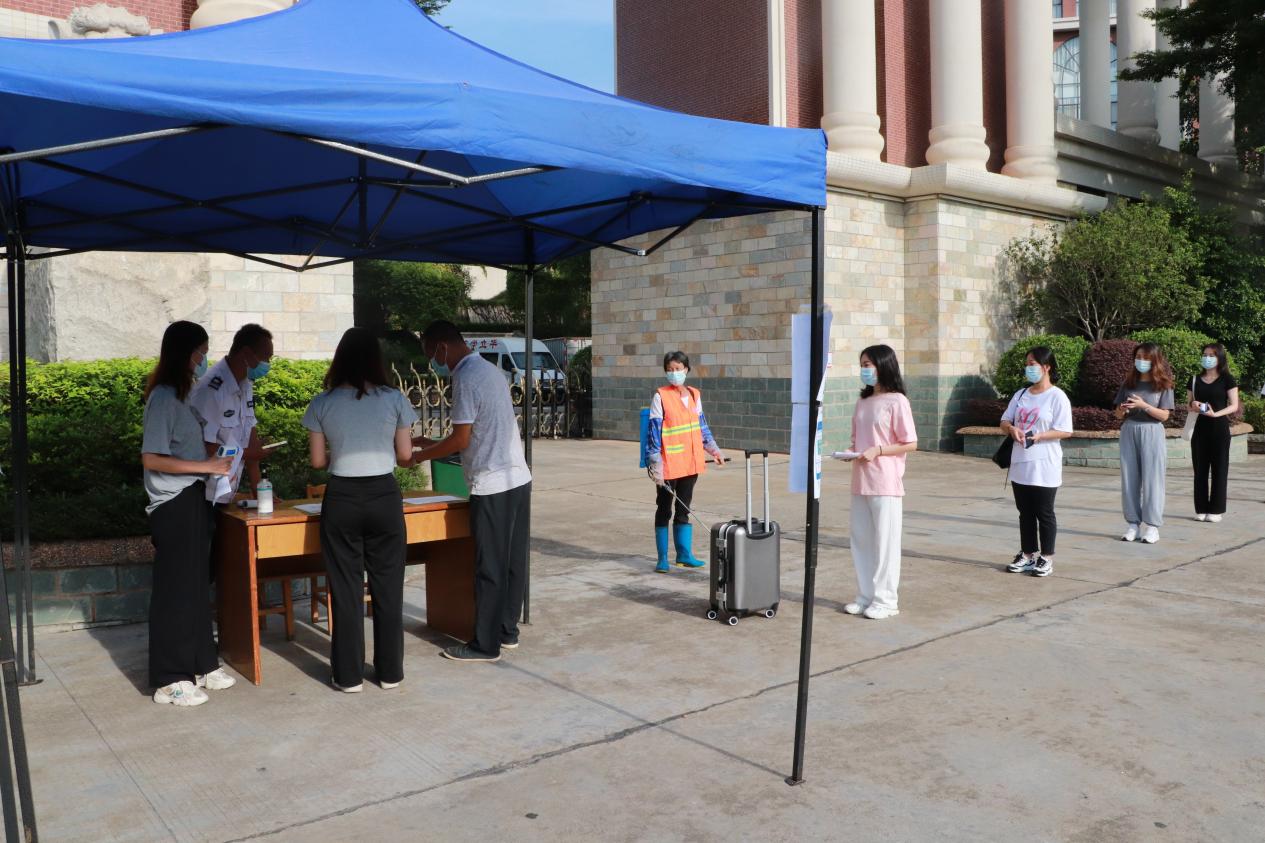 本次演練由學生處牽頭組織,綜合辦、教務處、后勤公司及各院系等相關部門聯(lián)合組織開展,嚴格按照廣東省和云浮市疫情防控和師生返校具體要求,執(zhí)行各項疫情監(jiān)測、處置等工作流程,確保演練有序進行。演練在學校大門口、宿舍樓和教學樓進行,先后模擬了對返校學生分別進行體溫檢測、核酸證明及身份查驗、行李消毒、更換口罩、行程卡、健康碼查驗等環(huán)節(jié)。同時,還模擬了學生返校時可能出現(xiàn)學生有發(fā)熱癥狀等各種突發(fā)情況,進行應急處理。