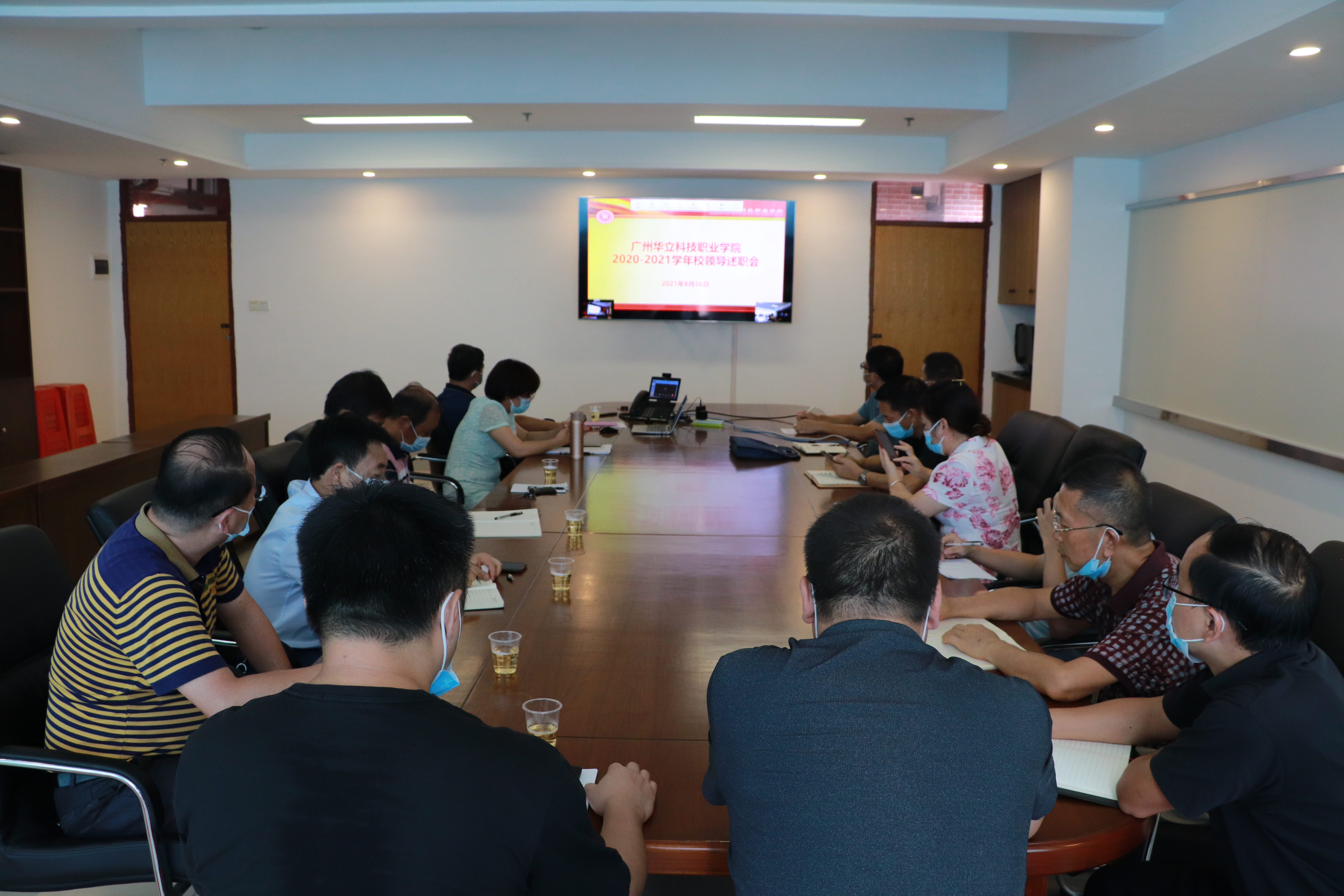 為全面總結(jié)2020-2021學(xué)年學(xué)校各項工作,科學(xué)謀劃2021-2022學(xué)年高質(zhì)量發(fā)展,激勵全校上下?lián)?dāng)作為,8月26日下午,學(xué)校在圖書館1號報告廳召開2020-2021學(xué)年學(xué)校工作總結(jié)暨校領(lǐng)導(dǎo)述職會議。學(xué)校董事會成員、校領(lǐng)導(dǎo)、全體教職工參會(云浮校區(qū)視頻連線參會)。校長劉莊主持會議。