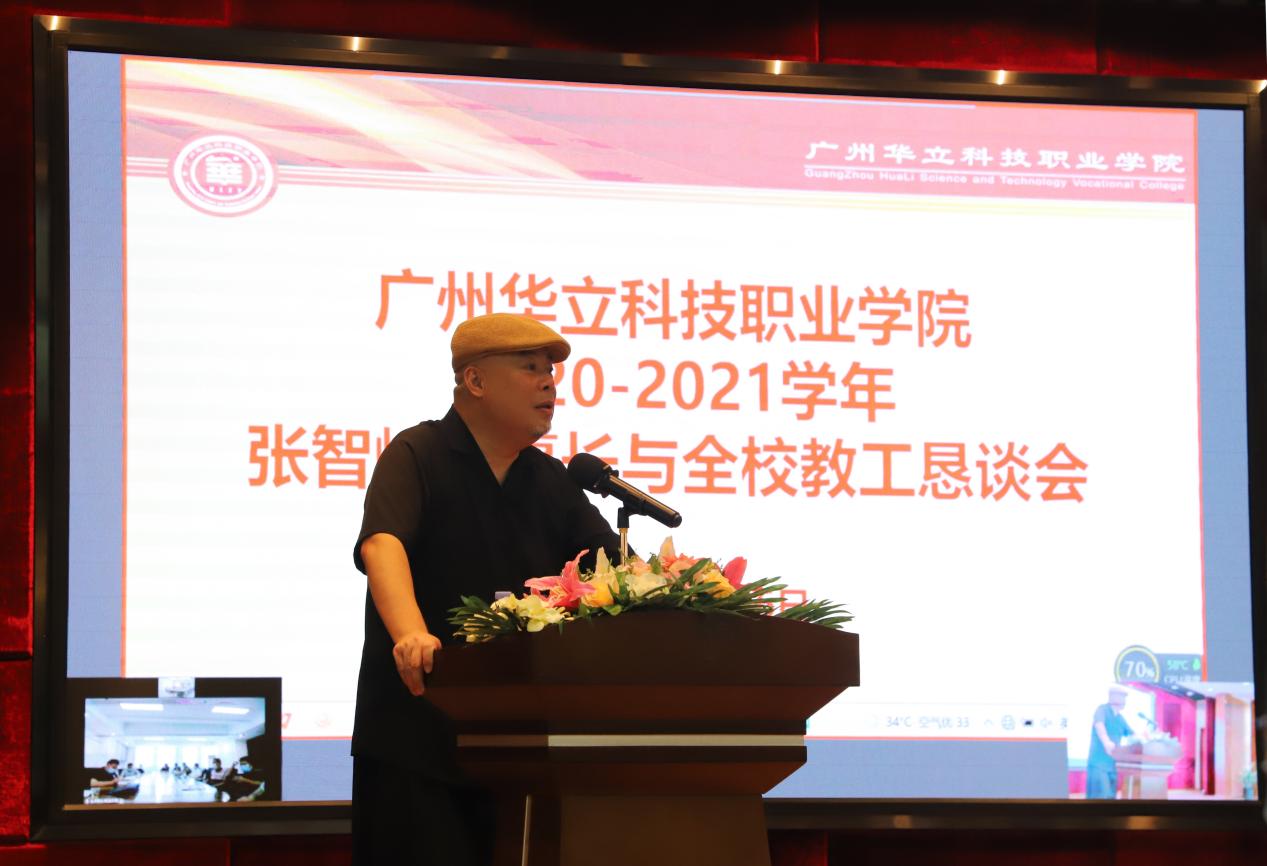 張智峰董事長深入淺出的為在座的師生“描繪”了“華立董事長”的“自我形象”,形象地剖析了在辦學(xué)過程中遇見困難時的心路歷程,希望以此及彼,為大家在各自的職業(yè)發(fā)展和人生選擇中提供動力和機(jī)會。他期待全校教職工要做到“五愛”“五懂”,即愛崗位、愛學(xué)習(xí)、愛學(xué)生、愛教書、愛華立,懂社會、懂學(xué)生、懂服務(wù)、懂市場、懂友情,讓自己成為更優(yōu)秀的人。