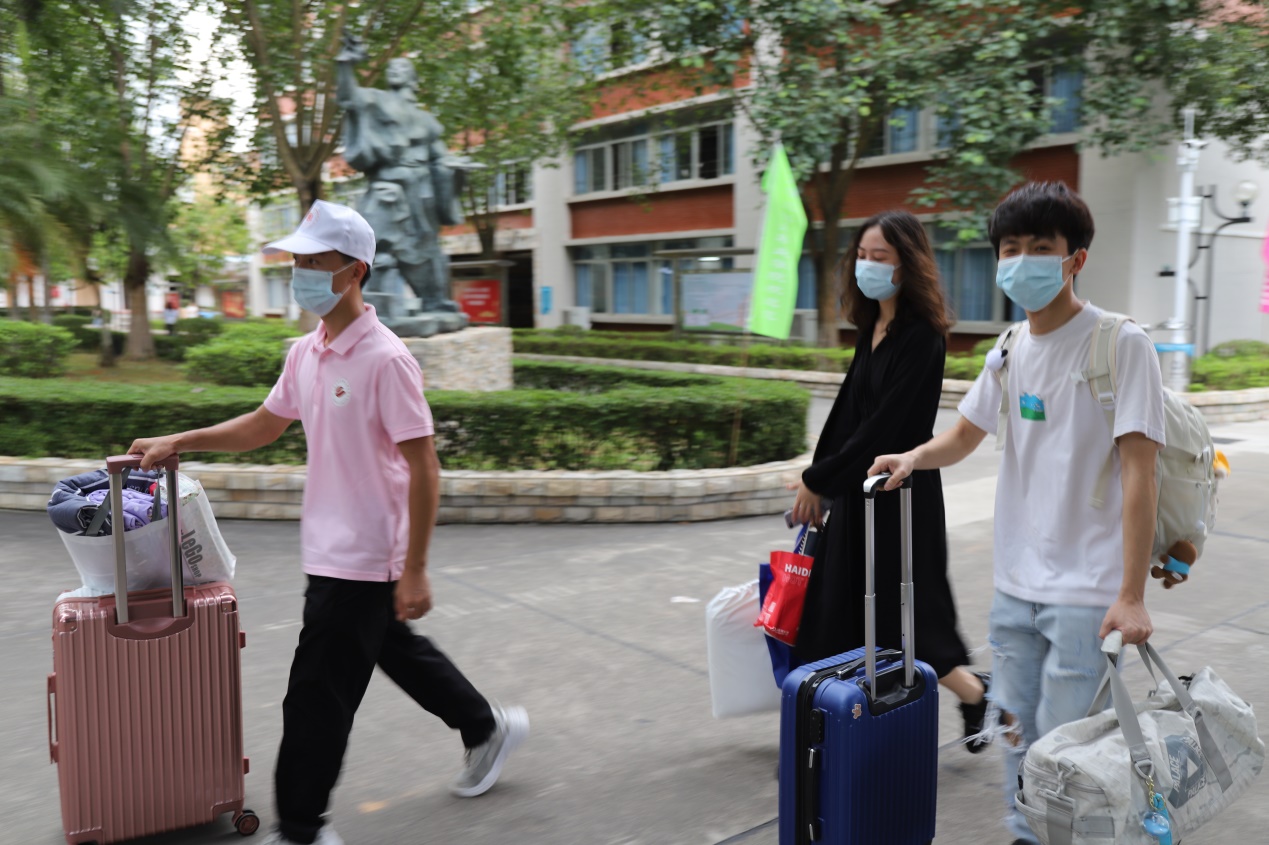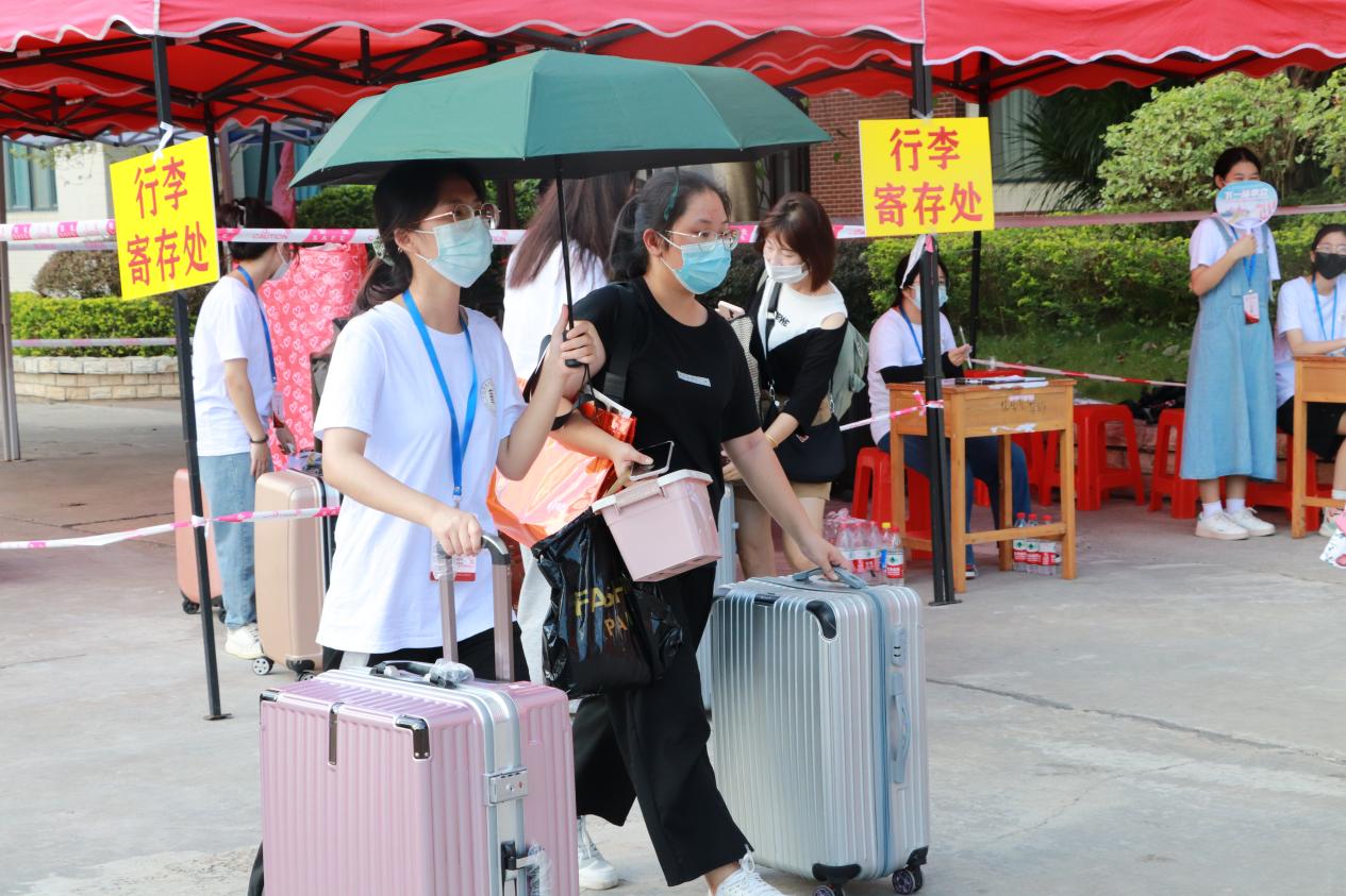 為了迎接他們,學校廣州校區(qū)和云浮校區(qū)早早就做好了準備。根據(jù)疫情防控要求,為提高學校疫情防控應急處置能力,保障新生報到安全順暢,學校在新生返校前開展了疫情防控應急綜合演練,學校大門設置了查看健康碼、體溫檢測、行李消毒等環(huán)節(jié),嚴格把控防疫關。據(jù)悉,新生持48小時核酸檢測結果到校,到達學校后,新生完成體溫測量、健康碼查驗等步驟,由迎新志愿者引領至宿舍入住。