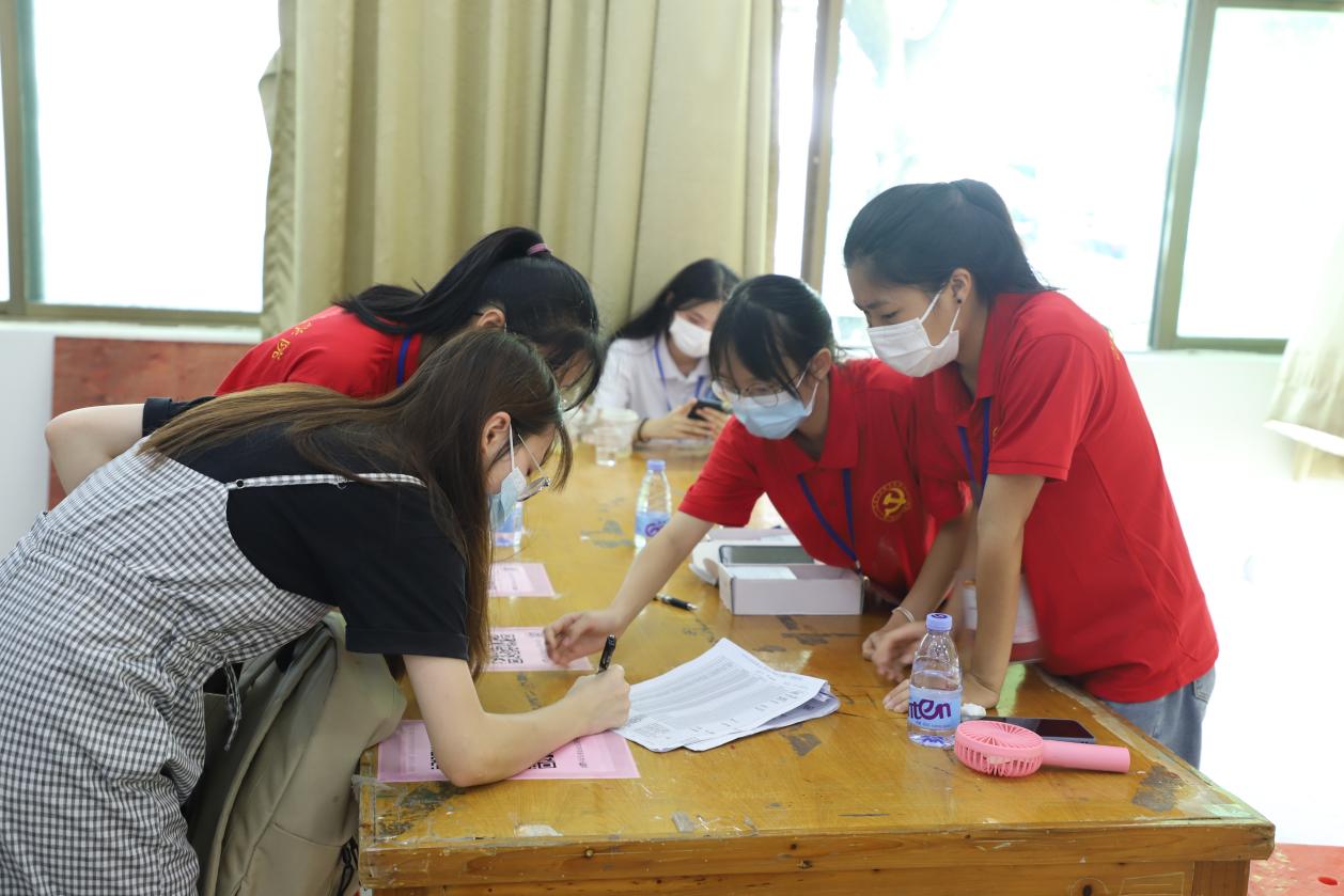 迎新現(xiàn)場,穿著“紅”“藍”“白”等顏色院服的學長學姐最為忙碌,這些志愿者為新生提供最全面的引導服務。他們展示學院“十八般武藝”,全程面帶微笑為新生辦理手續(xù),為新生提供行李搬運、引導、咨詢等各項服務,耐心地為新生解答關于學習、住宿等各方面的問題,他們一遍一遍地回答著各種問題,用最短的時間辦完入學手續(xù),“一站式”貼心服務俘虜了2021級小萌新們的心。