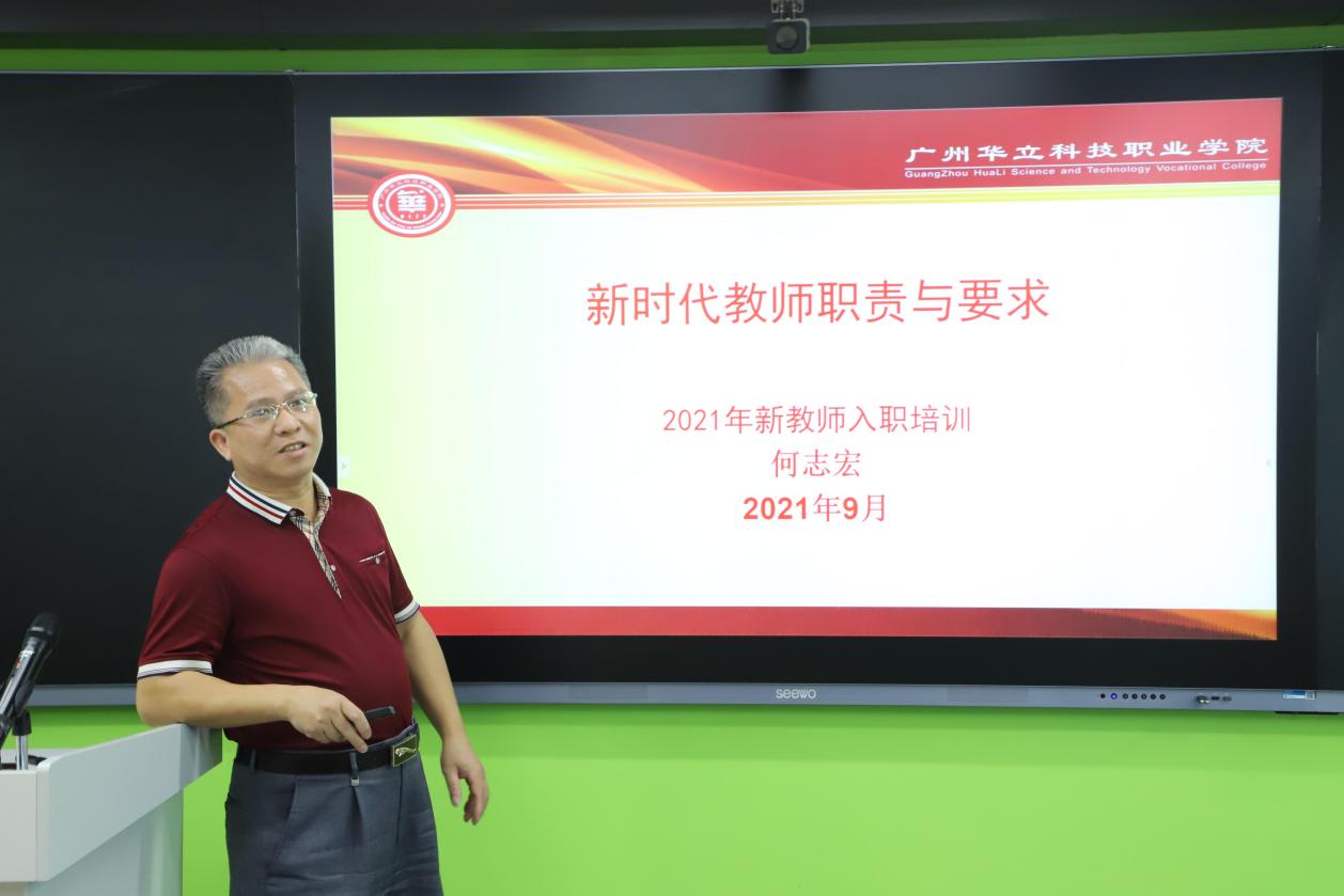 最后,教務(wù)處副處長(zhǎng)何志宏針對(duì)教師教學(xué)上的職責(zé)和要求展開(kāi)了詳細(xì)的闡述。首先,提出習(xí)近平主席對(duì)高校教師的師德規(guī)范:“政治要強(qiáng)”“情懷要深”“思維要新”“視野要廣”“自律要嚴(yán)”“人格要正”。其次,針對(duì)教師使命,提倡實(shí)行課堂改革。要求新入職教師以學(xué)生為中心,進(jìn)行有效的教學(xué)管理。最后,提出了教師教學(xué)三大基本功,要求新入職教師從教學(xué)設(shè)計(jì)、教學(xué)技能要求和教學(xué)反思等方面全面提升自身教學(xué)能力。