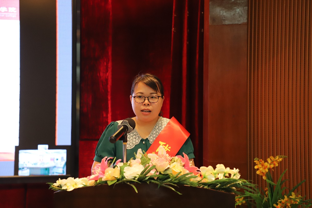 獲的今年省“南粵優(yōu)秀教師”稱號的閔小翠老師作為優(yōu)秀教師代表發(fā)言,分享了自己參與計算機信息工程學院的籌建到學院發(fā)展壯大的歷程,分享了在教學科研方面的心得體會,指出作為一名教師既感到驕傲和自豪,又倍感責任,倍添動力。