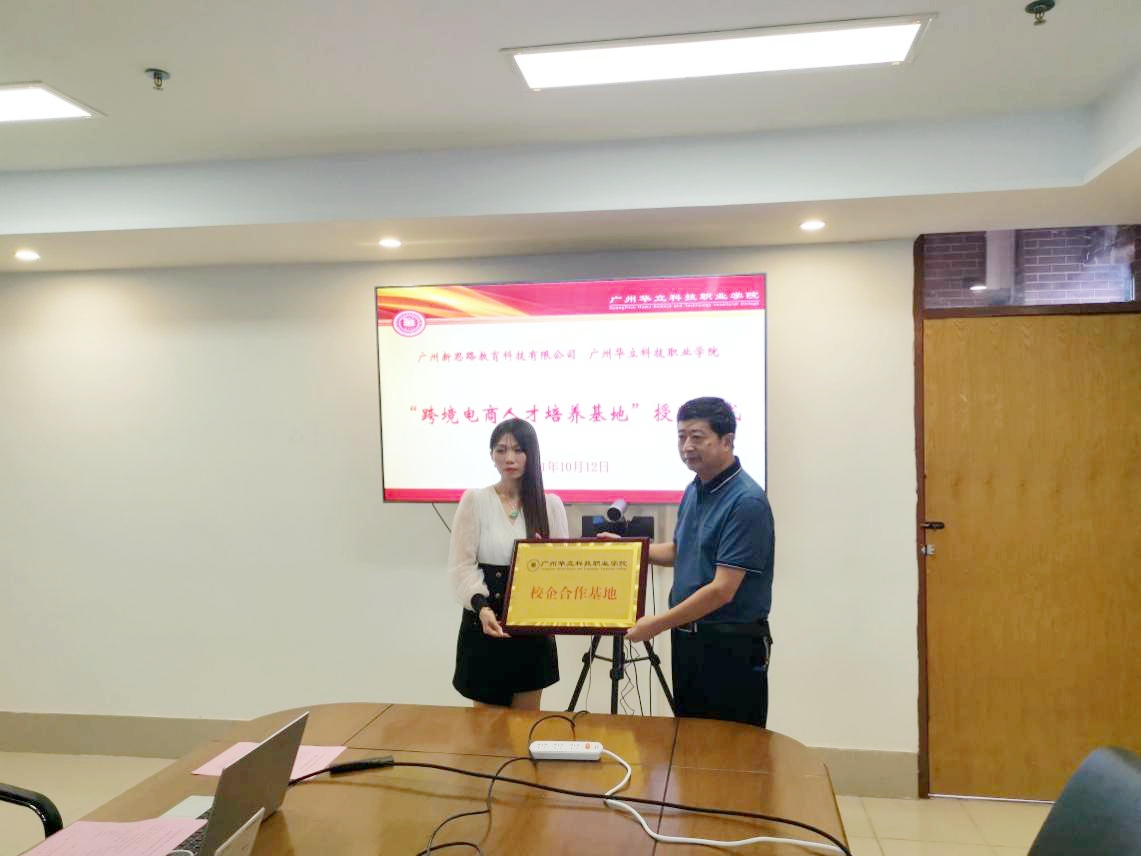 簽約會上,易健民副校長對新思路公司馬茜茜總監(jiān)一行的到來表示熱烈的歡迎。他強(qiáng)調(diào),雖然受疫情影響,全球的零售總額在下降,但電子商務(wù)滲透率大幅提升,反而促進(jìn)了跨境電商的逆勢增長。尤其是作為外貿(mào)大省的廣東,跨境電商的飛速發(fā)展離不開大量的跨境電商人才,廣州新思路教育科技公司是阿里巴巴官方人才供應(yīng)商,是阿里公司戰(zhàn)略合作伙伴,培養(yǎng)跨境電商專業(yè)人才實力強(qiáng)大。易健民副校長表示,廣州華立科技職業(yè)學(xué)院云浮校區(qū)有與跨境電商發(fā)展相關(guān)的專業(yè),如電子商務(wù)、物流管理、商務(wù)英語等專業(yè),可以為跨境電商行業(yè)的發(fā)展提供豐富的人才儲備。他希望雙方在前期合作的基礎(chǔ)上,提升產(chǎn)教融合、校企合作水平,利用簽約授牌的契機(jī),雙方在共建課程、共建專業(yè)、共建師資、共建跨境電商培訓(xùn)基地等方面深度合作,長期合作,共同打造校企合作新的亮點。