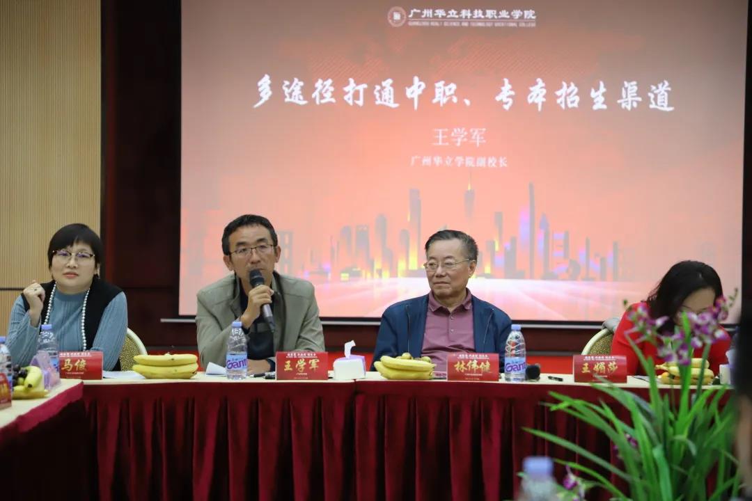 廣州華立學(xué)院副校長(zhǎng)王學(xué)軍以《多途徑打通中職、專本招生渠道》為題發(fā)表演講,主要圍繞合作專業(yè)拓展、招生政策、中高職教學(xué)貫通與銜接、人才培養(yǎng)方案等主題進(jìn)行探討交流。與以往中職教育狹窄的升學(xué)渠道相比,如今中職生繼續(xù)升學(xué)的渠道更加多樣,除已被人熟知的“五年?!敝?,高職分類招考是中職生的另一個(gè)重要升學(xué)渠道,拓寬了技術(shù)技能人才成長(zhǎng)通道,為學(xué)生多樣化選擇、多路徑成才搭建“立交橋”。他表示,興趣是最好的老師。對(duì)于動(dòng)手能力強(qiáng)且有相應(yīng)興趣愛好和一定職業(yè)規(guī)劃的學(xué)生來說,選擇實(shí)操性強(qiáng)的職業(yè)院校,能更有利于今后的發(fā)展。同時(shí),職業(yè)教育已由以往單純地注重一技之長(zhǎng)轉(zhuǎn)變?yōu)楦幼⒅貙W(xué)生全面發(fā)展,由就業(yè)教育轉(zhuǎn)向生涯教育,國(guó)家正在著力構(gòu)建由中職、高職、職業(yè)本科乃至專業(yè)學(xué)位研究生教育的現(xiàn)代職業(yè)教育體系,選擇職業(yè)教育同樣擁有人生出彩的機(jī)會(huì)。廣州華立學(xué)院作為本科院校,未來將加強(qiáng)與高職院校的專升本合作,打通“中職—高職—本科”的升學(xué)途徑。