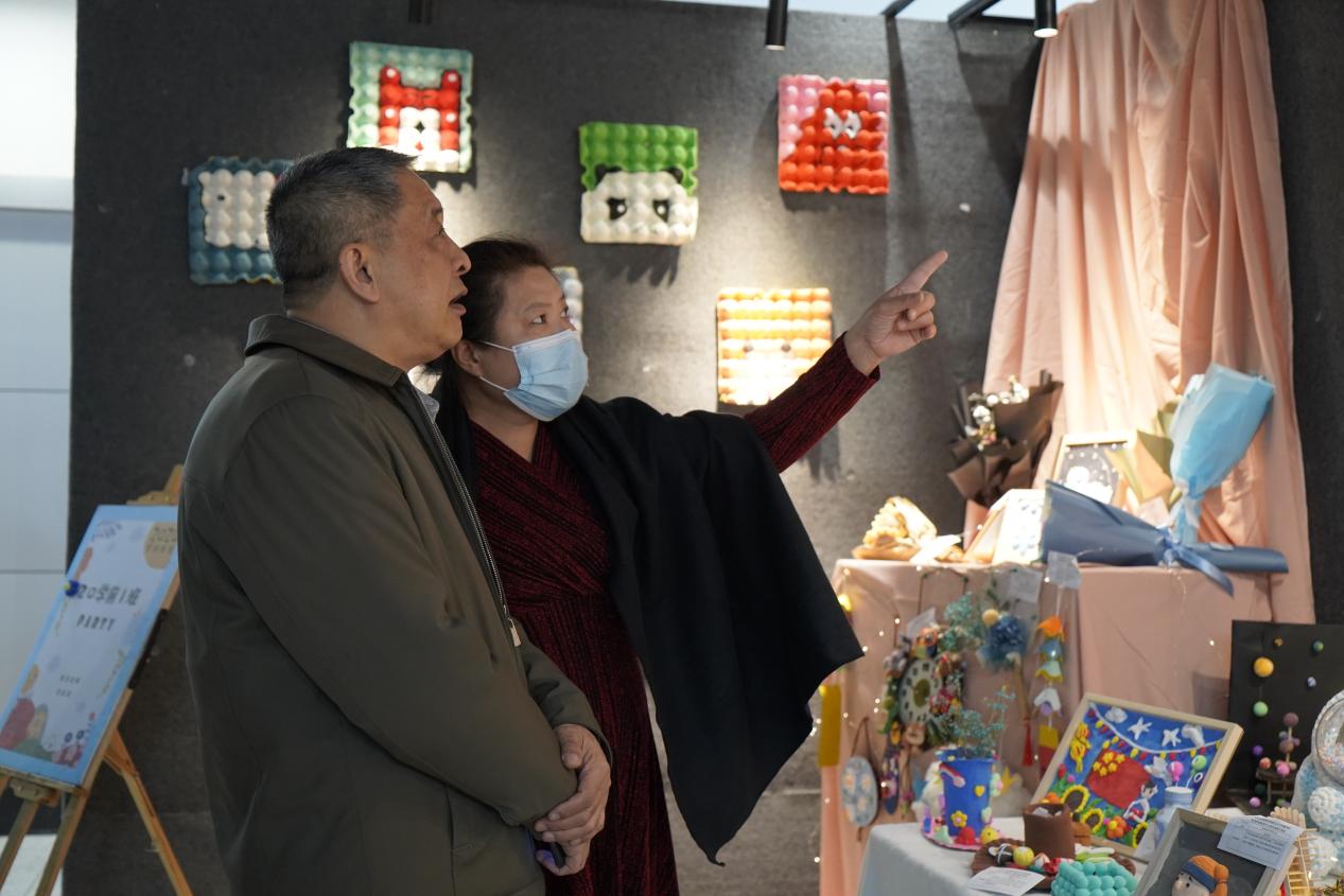 開幕式結束后,參加活動的領導、師生興致勃勃參觀了展出。他們對豐富多彩、惟妙惟肖的手工制作成品贊不絕口。