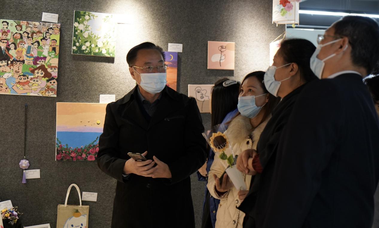 李于昆院長在講話中指出,本次展覽體現(xiàn)了師生共同參與的教學成果,是一個創(chuàng)新展,更是一種創(chuàng)新的教學模式,即將課堂的學習成果轉變?yōu)槭止ぷ髌愤M行展覽,創(chuàng)新性十足。他認為,本次展覽具有三大特色:一是內容豐富,從慶祝建黨100周年的主題到現(xiàn)代藝術的各個方面都有所涉獵;二是形式多樣,從平面到立體,從手工工藝到綜合設計都有展現(xiàn);三是材料環(huán)保,利用一些廢棄物品,比如報紙、易拉罐等進行二次創(chuàng)造,體現(xiàn)了較強的環(huán)保生態(tài)意識。