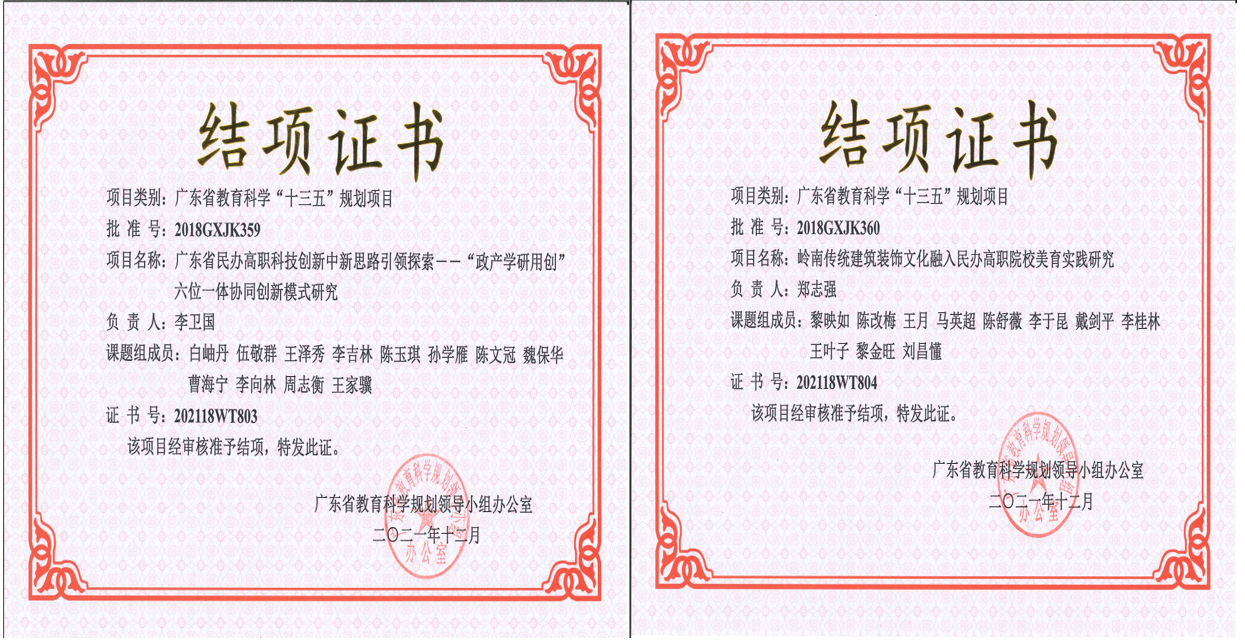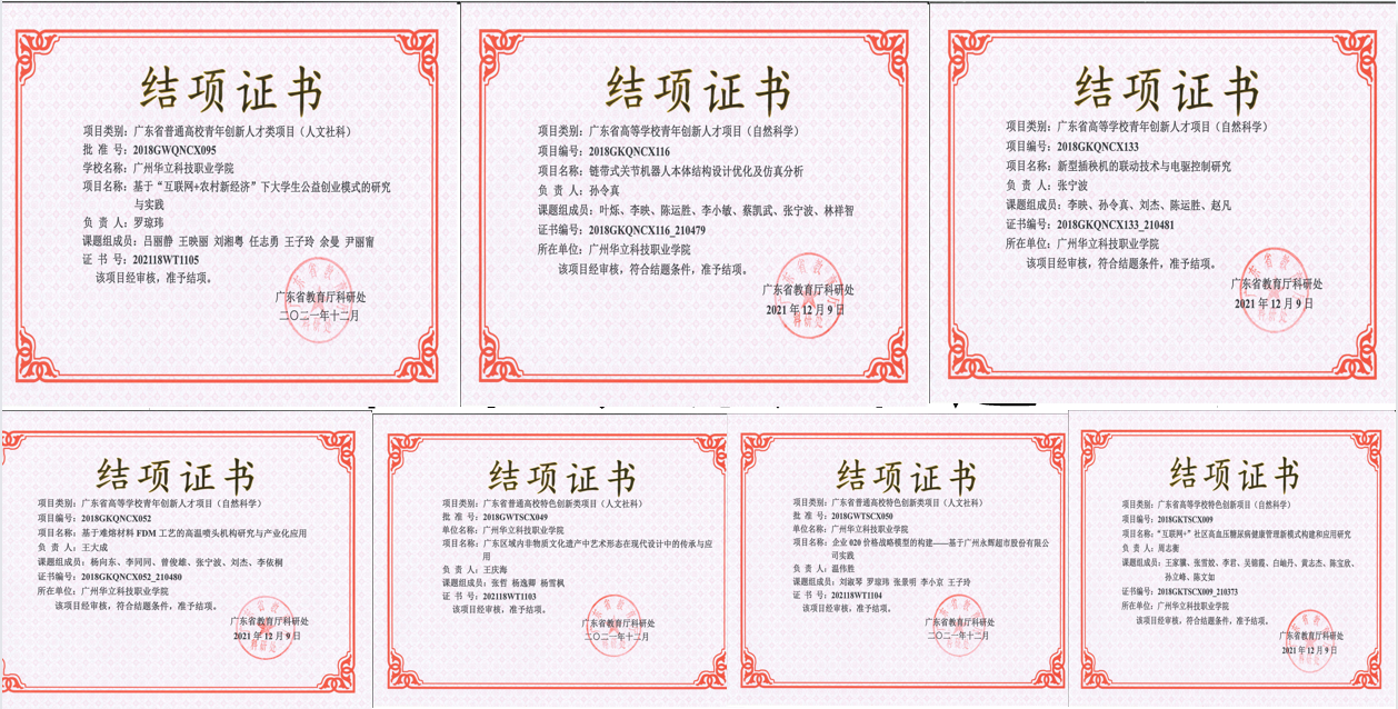 根據(jù)根據(jù)省教育廳、省財政廳制定的《廣東省高等教育“創(chuàng)新強校工程”實施方案(試行)》(粵教高函〔2014]8號)的要求,結(jié)合“廣東高校重大科研項目與成果培育計劃”結(jié)題要求,我校分別對周志衡老師等老師主持的廣東省教育廳普通高??蒲泻晚椖拷Y(jié)題相關(guān)規(guī)定,李衛(wèi)國、鄭志強老師主持的廣東省教育科學(xué)規(guī)劃項目相關(guān)結(jié)題規(guī)定,對申請結(jié)題的項目開展結(jié)題相關(guān)工作,并按時提交結(jié)題材料,經(jīng)過專家評審,全部課題通過驗收,特此祝賀。