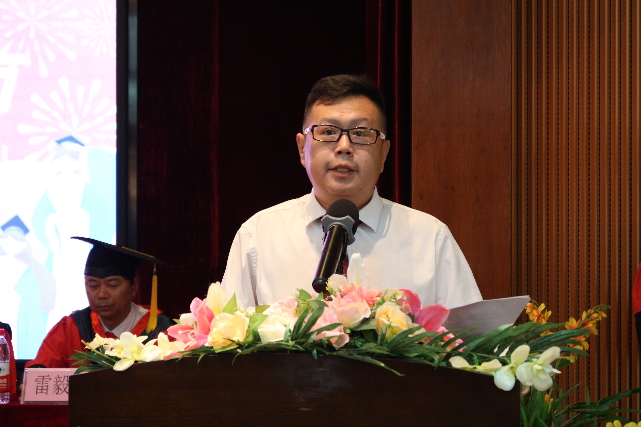 健康學(xué)院張邦奎副教授作為教師代表發(fā)言。他希望同學(xué)們做人要講誠信,有毅力,不要怕困難,要樂觀的看問題、處理事情。建立良好的信心,為家庭和社會,恪守自己的本分;他認為成人比成才更為重要。希望大家一定要經(jīng)得起考驗,要相信陽光總在風雨后。未來技術(shù)會更成熟,價值觀以及物質(zhì)條件會逐步完善,具有社會交往能力的會更加精進。希望大家謹記回報國家和為社會做出貢獻,認真體會“大國工匠,技術(shù)強國”的深刻含義。