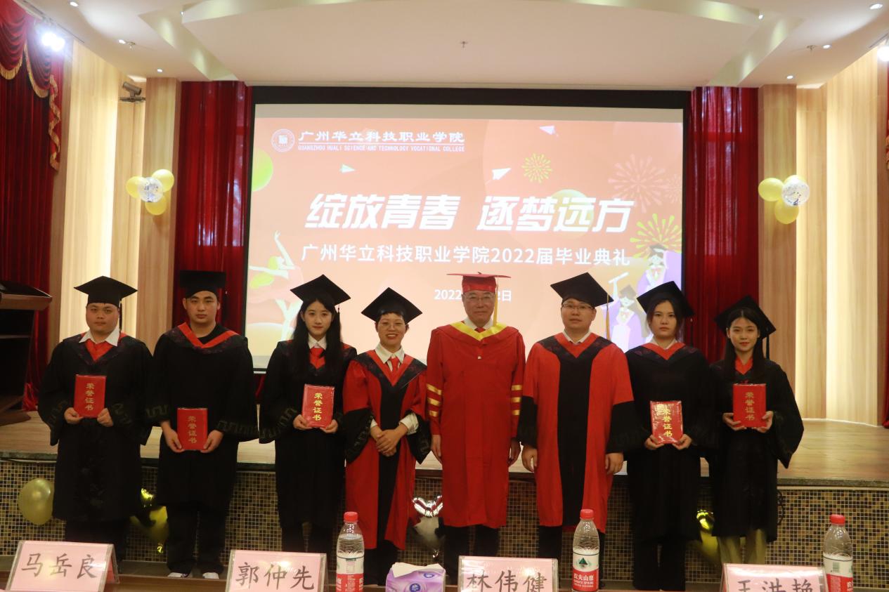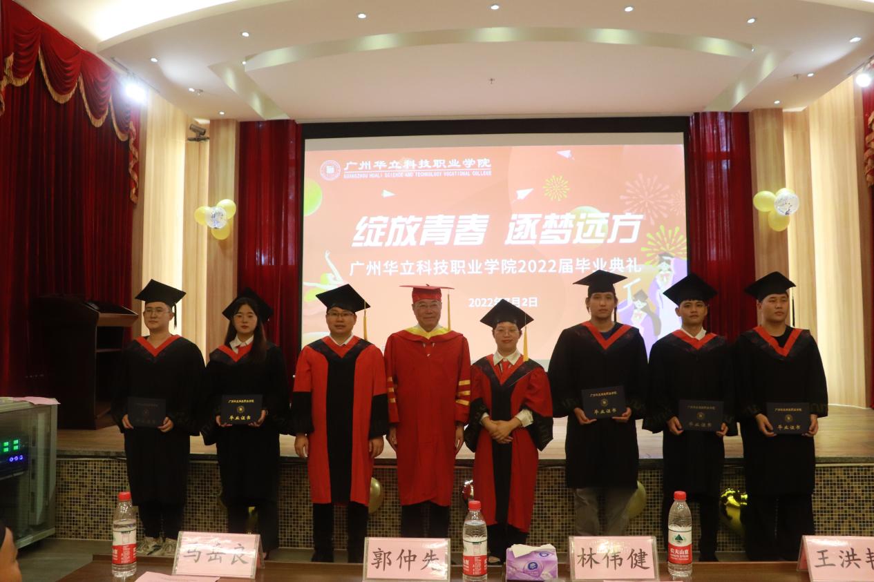 校長助理郭仲先宣讀了《廣州華立科技職業(yè)學(xué)院關(guān)于表彰2022屆優(yōu)秀畢業(yè)生的決定》。出席畢業(yè)典禮的學(xué)校領(lǐng)導(dǎo)一起為受表彰的畢業(yè)生代表頒發(fā)了榮譽證書,為參加畢業(yè)典禮的畢業(yè)生現(xiàn)場頒發(fā)了畢業(yè)證書。