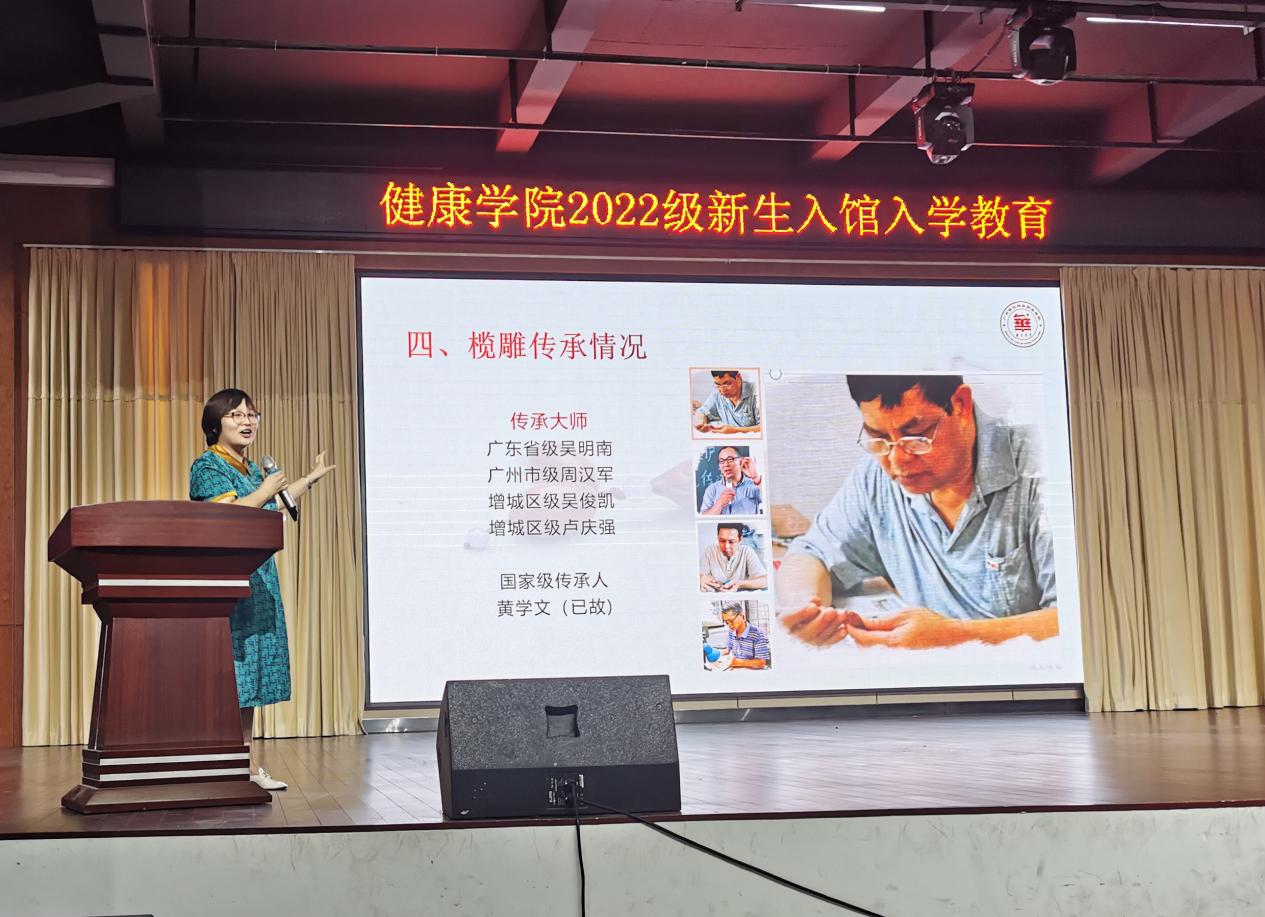 學校領導為新生宣講傳統(tǒng)文化成為華立職院開學季入學教育一大亮點。6日,馬俊常務副校長親臨圖書館8樓,為健康學院22級新生送上一份文化大餐,她通過對華立校園文化建設特色品牌工程——欖雕藝術傳承基地的介紹,展現(xiàn)了國家級非遺項目欖雕這一中華優(yōu)秀傳統(tǒng)文化的魅力,以此激發(fā)同學們的文化自信和社會責任感,讓剛剛邁入職業(yè)教育門檻的大學生感受到工匠精神和勞動精神對未來職業(yè)生涯的的重要意義。