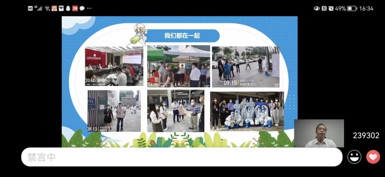 陳書記首先給我們介紹了目前疫情防控情況,表示新冠肺炎疫情爆發(fā)以來,中國人民用可歌可泣的戰(zhàn)“疫”實績向國際社會傳遞了中國戰(zhàn)“疫”必勝的信心和希望,讓世界看到了中國的責(zé)任與擔(dān)當(dāng)。然而,隨著病毒不斷變異,本輪疫情來勢洶洶。廣州市正面臨抗疫三年以來最復(fù)雜、最嚴峻的疫情,而我校也面臨抗疫三年以來最艱難的時刻。陳書記向大家發(fā)出疑問:在這關(guān)鍵時刻,我們應(yīng)該如何做好防疫,同心協(xié)力打贏這場疫情防控攻堅戰(zhàn)呢?
