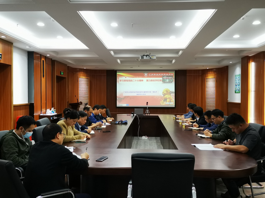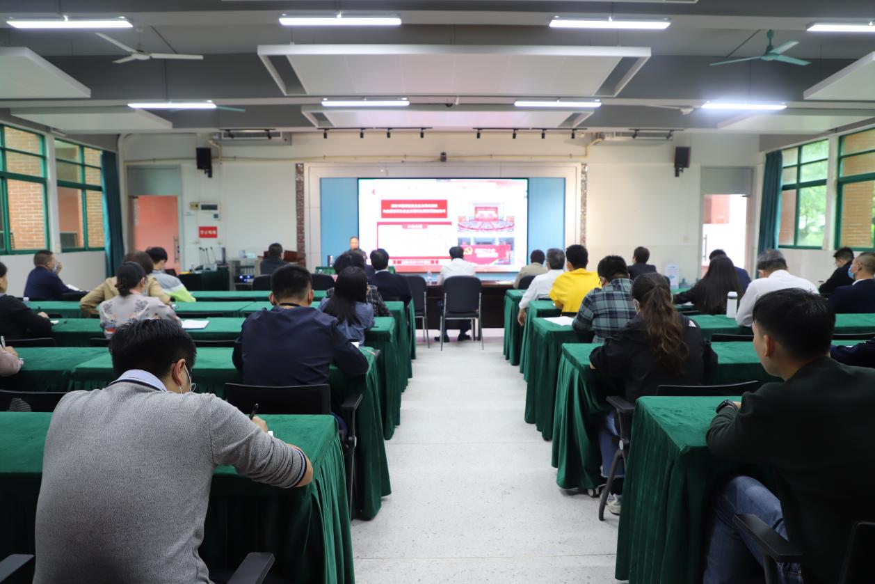 校長(zhǎng)易健民,黨務(wù)副校長(zhǎng)馬俊,副校長(zhǎng)陳顯強(qiáng),黨委副書記高堯來(lái),校長(zhǎng)助理葉春桃以及各部門主要負(fù)責(zé)人,二級(jí)學(xué)院黨組織負(fù)責(zé)人參加了會(huì)議。學(xué)校黨委副書記王洪艷,校長(zhǎng)助理郭仲先和云浮校區(qū)黨務(wù)干部及各部門負(fù)責(zé)人,通過(guò)視頻連線參加了學(xué)習(xí)。