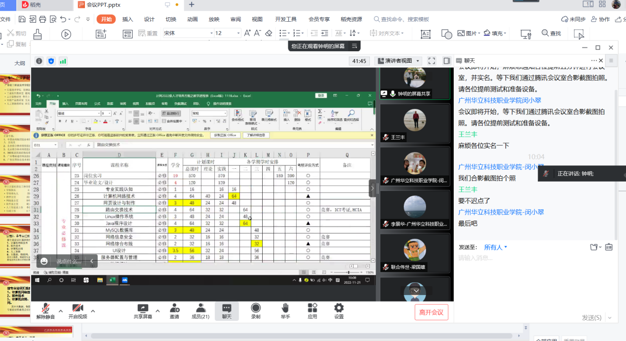 接著由各系主任按順序匯報(bào):計(jì)算機(jī)網(wǎng)絡(luò)技術(shù)專業(yè)、軟件技術(shù)專業(yè)、計(jì)算機(jī)應(yīng)用專業(yè)、人工智能專業(yè)以及大數(shù)據(jù)技術(shù)專業(yè)和物聯(lián)網(wǎng)應(yīng)用技術(shù)專業(yè)。在各系主任匯報(bào)完本系對22級人才培養(yǎng)的方案后,廣東輕工職業(yè)技術(shù)學(xué)院的專家以及企業(yè)專家結(jié)合市場及崗位需求對各專業(yè)的人才培養(yǎng)方案都給出了自己的想法和建議。與會老師都認(rèn)真聽取各方意見,深入交流。