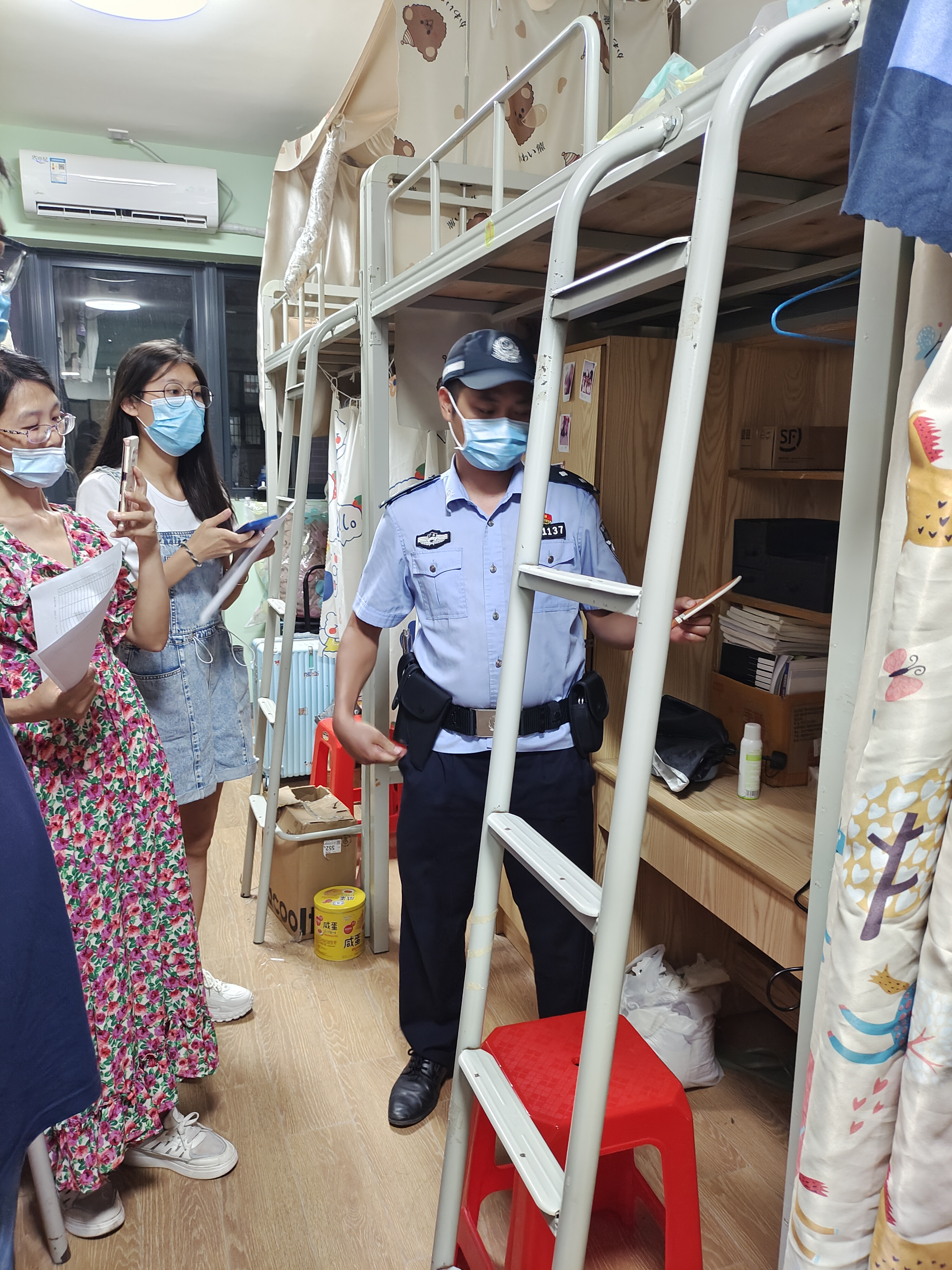 (都楊派出所警官與學(xué)校聯(lián)合進(jìn)行宿舍安全巡查)