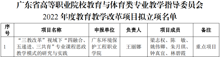 為貫徹落實最新修訂的《中華人民共和國職業(yè)教育法》等文件精神,進一步辦好新時代職業(yè)教育,加快建設中國特色的現(xiàn)代職業(yè)教育體系,推進我省教育質量提升,促進職業(yè)教育事業(yè)改革發(fā)展,廣東省各教指委陸續(xù)啟動2022年教改課題申報工作,我校教師也積極參與到各類教指委項目的申報當中。