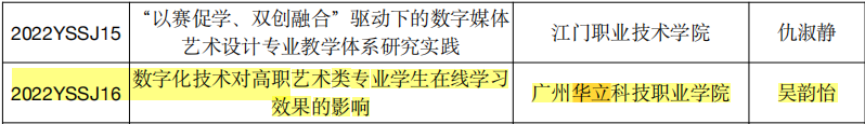 近日獲悉,根據(jù)《廣東省高等職業(yè)院校藝術設計類專業(yè)教學指導委員會關于公布 2022 年度教育教學改革項目立項結果的通知》(粵高職藝術設計教指委〔2022〕04 號),我校吳韻怡、馬俊、黎映如三位老師的項目獲立項建設。根據(jù)廣東省職業(yè)院校繼續(xù)教育與職業(yè)培訓工作指導委員會擬立項公示結果,我校吳利玲、王澤秀、曾英姿三位老師的項目擬公示立項建設。根據(jù)《關于組織申報2022年度教育與體育類專業(yè)教育教學改革項目的通知》(粵高職教育與體育教指委〔2022〕2號)等文件,我校姚瑩瑩、鄭元君、韋建林、馬碩四位老師的項目獲立項建設。