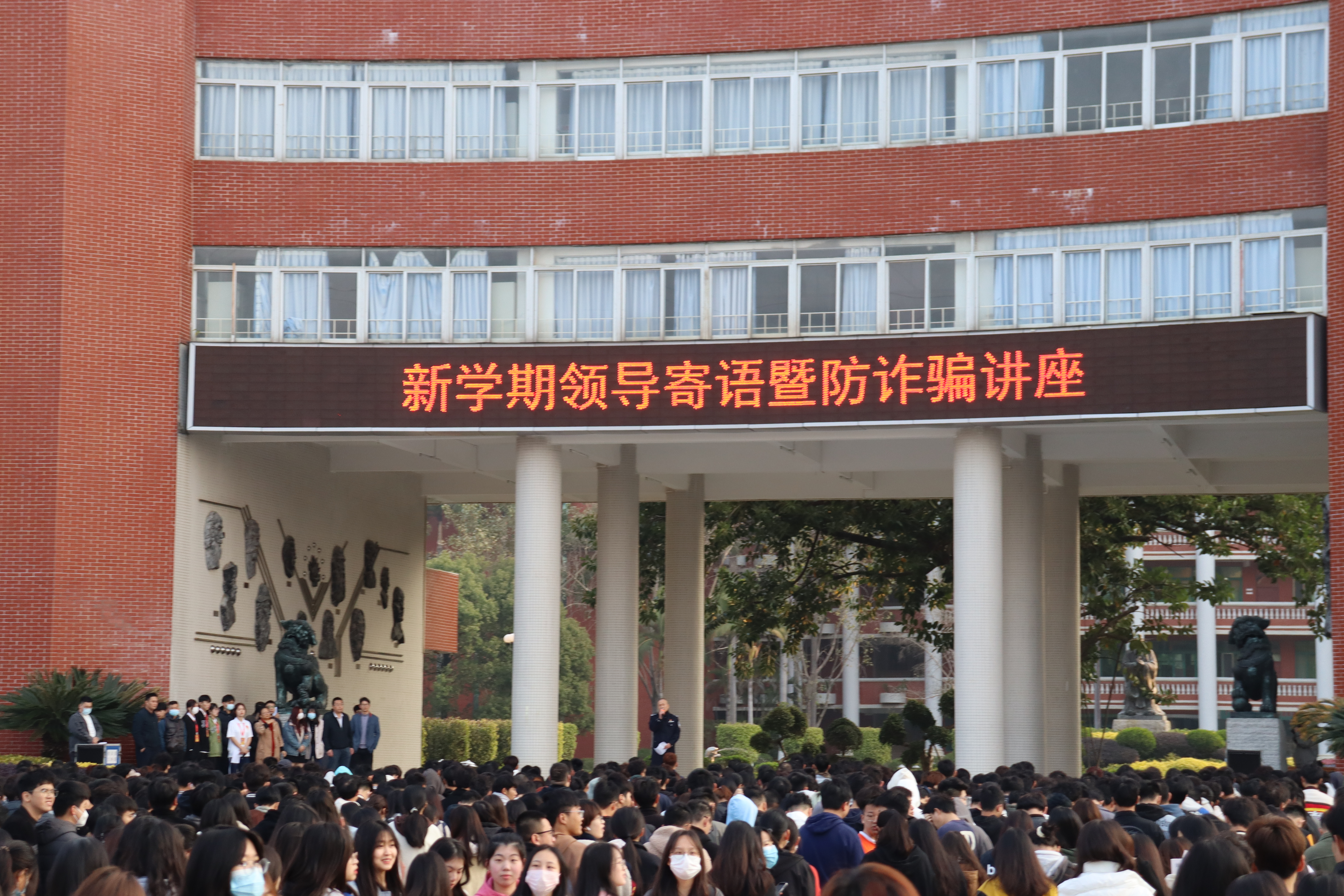 早上7點(diǎn),綜合樓廣場國旗下人潮涌動,各班級列隊(duì)整齊,等待活動開始,講座開始前,由副校長高堯來作新學(xué)期寄語。高校長強(qiáng)調(diào),新學(xué)期要把校園安全工作作為首要任務(wù),安全問題不容忽視,要常抓不懈,落到實(shí)效,全體師生要提高安全防范意識,做維護(hù)校園安全的主人,共同筑起思想、行為和生命的安全長城。隨后,賴榮慶警官作防詐騙專題知識輔導(dǎo)。首先,賴警官針對大學(xué)生近期面臨的詐騙案件進(jìn)行分析,強(qiáng)調(diào)了目前的詐騙方式和類型復(fù)雜多變且具有很強(qiáng)迷惑性,在校學(xué)生與社會接觸面不廣,思想較單純,缺乏識別陷阱的能力,越來越多的大學(xué)生受不法分子誘惑而陷入詐騙的泥潭,嚴(yán)重影響生活、學(xué)習(xí)、工作,需要我們加強(qiáng)關(guān)注,堅(jiān)決守好“錢袋子”。同時,通過典型案例并結(jié)合我院師生發(fā)生幾起真實(shí)案例,列舉了校園詐騙傳銷、校園貸、短信詐騙、電話詐騙、網(wǎng)絡(luò)詐騙等多種詐騙類型,向現(xiàn)場師生分析了詐騙案件發(fā)生的主要原因,并重點(diǎn)圍繞提高師生自我防范意識和自我有保護(hù)能力提供了極具針對性地應(yīng)對策略與方法,提醒師生要時刻保持防詐意識,果斷識破各類詐騙行為,增強(qiáng)自我防范能力,保障生命財(cái)產(chǎn)安全。