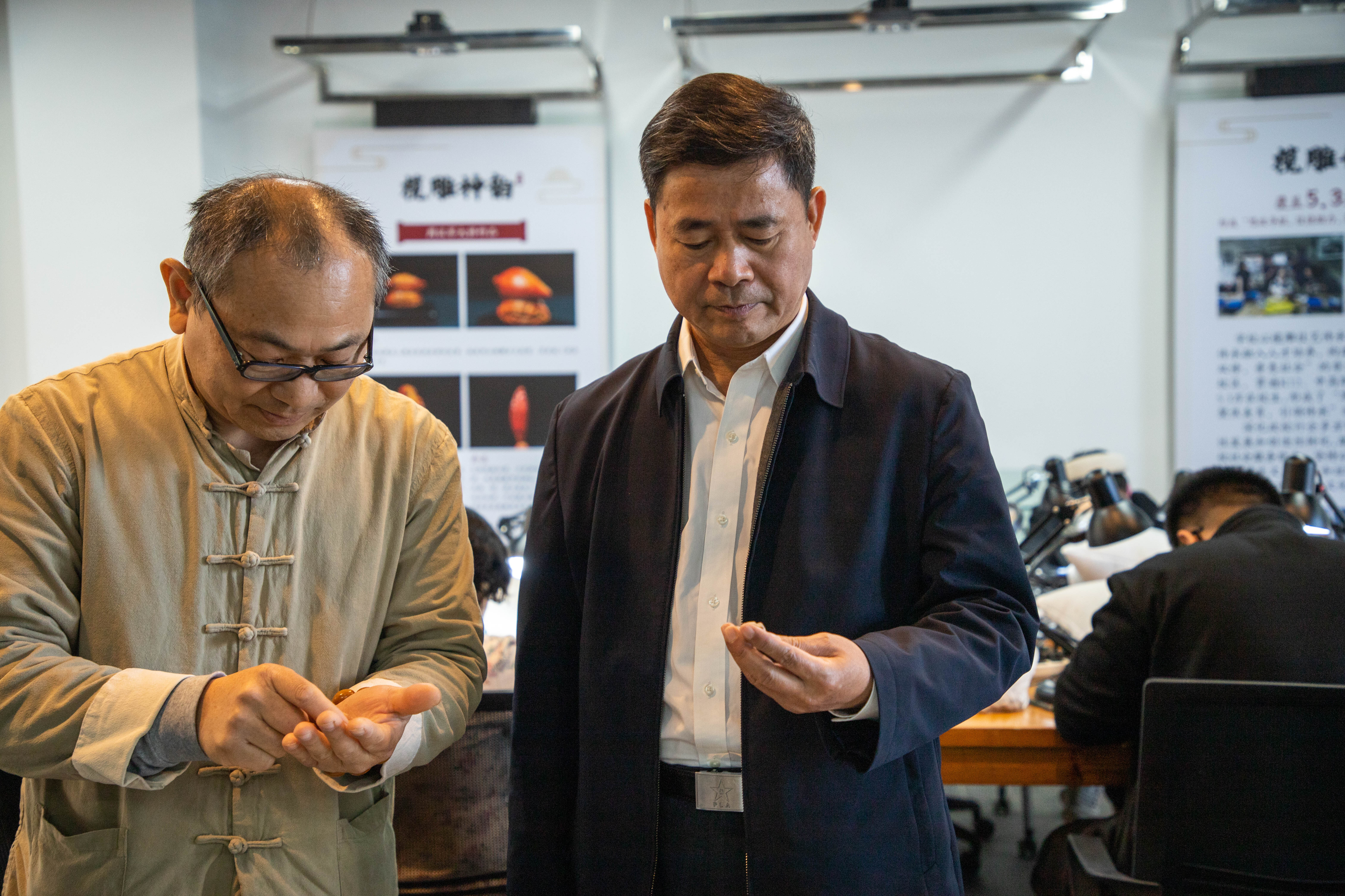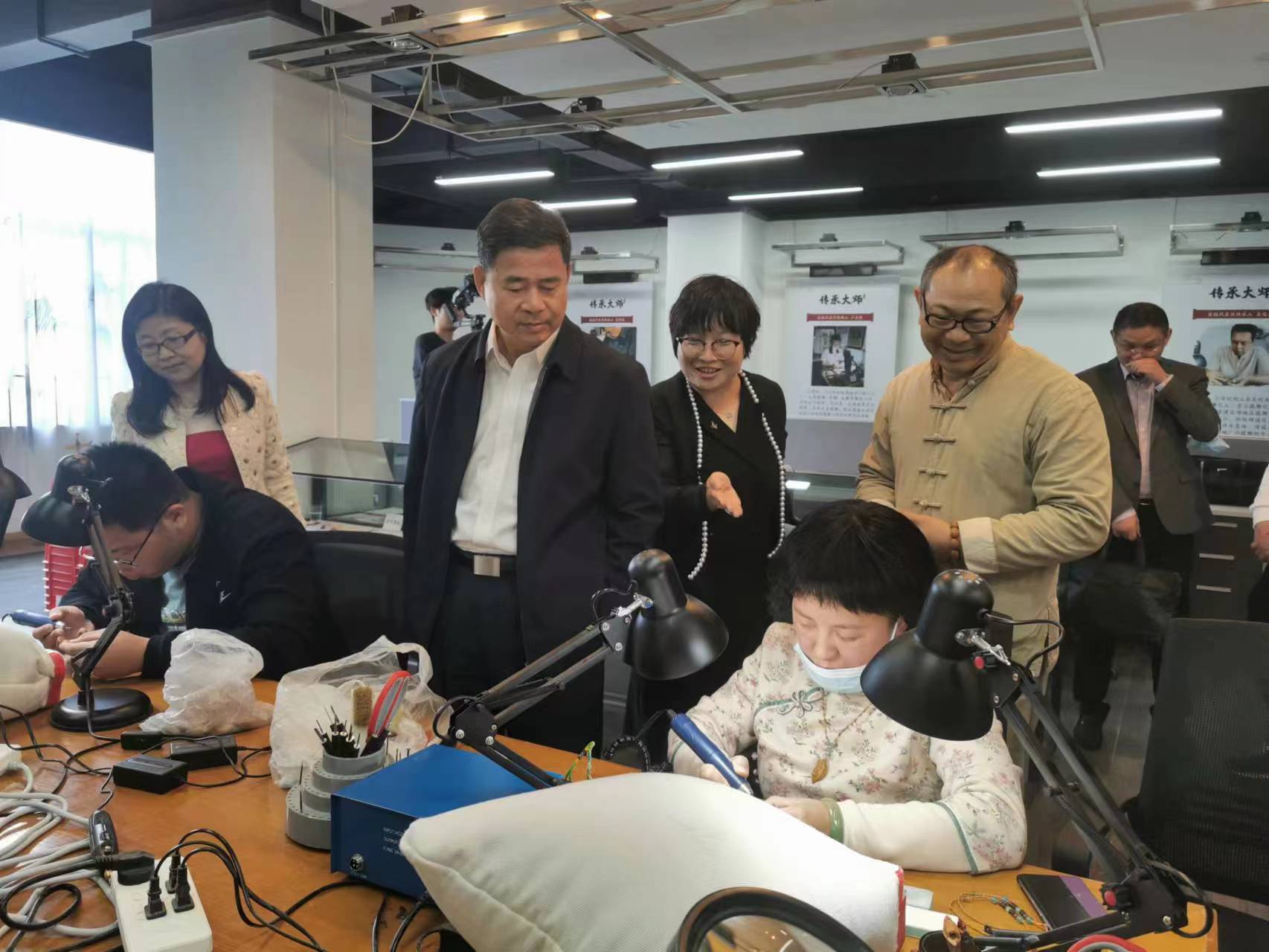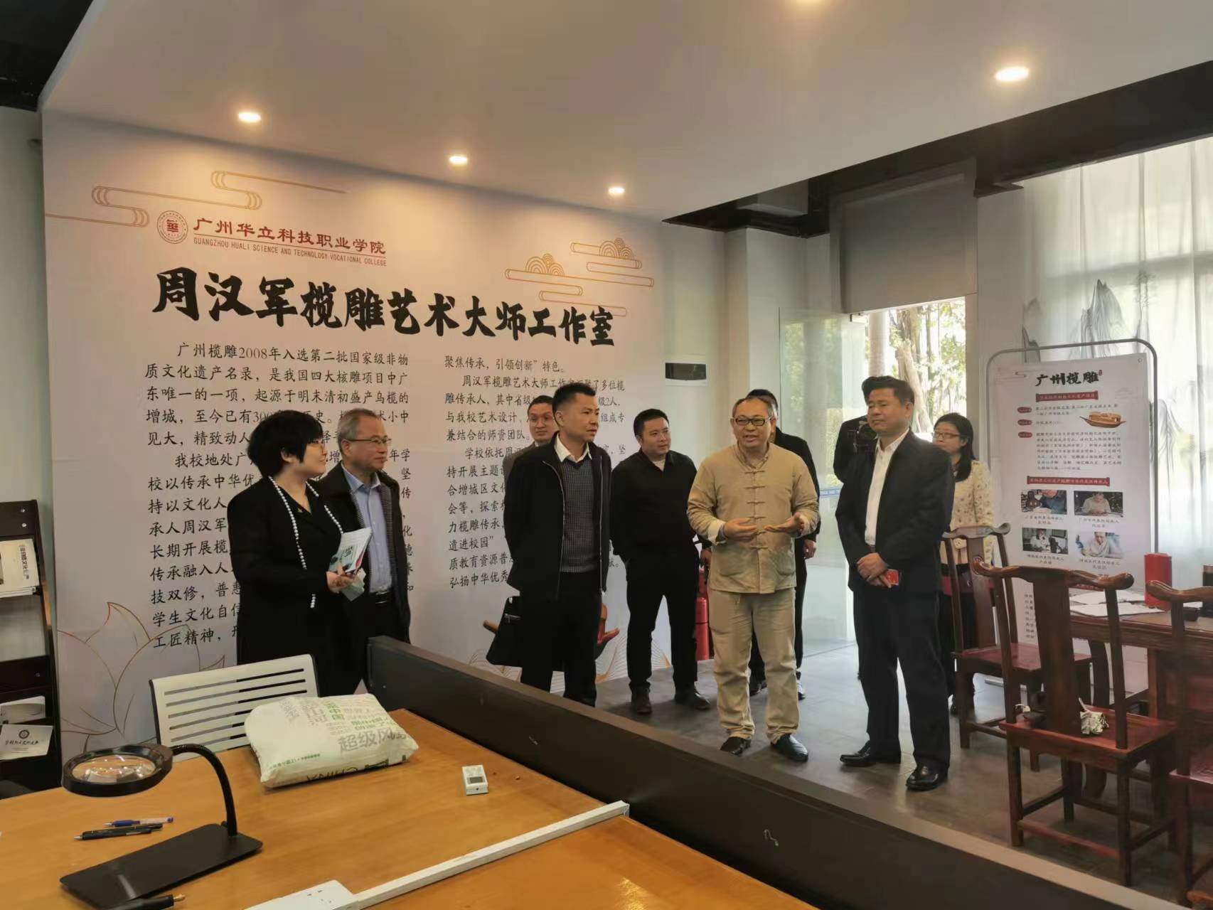 調(diào)研組成員會后參觀了學(xué)校就業(yè)創(chuàng)業(yè)辦公場地、武裝部、征兵工作站、周漢軍欖雕藝術(shù)大師工作室等場地,與學(xué)校師生進(jìn)行近距離交流。