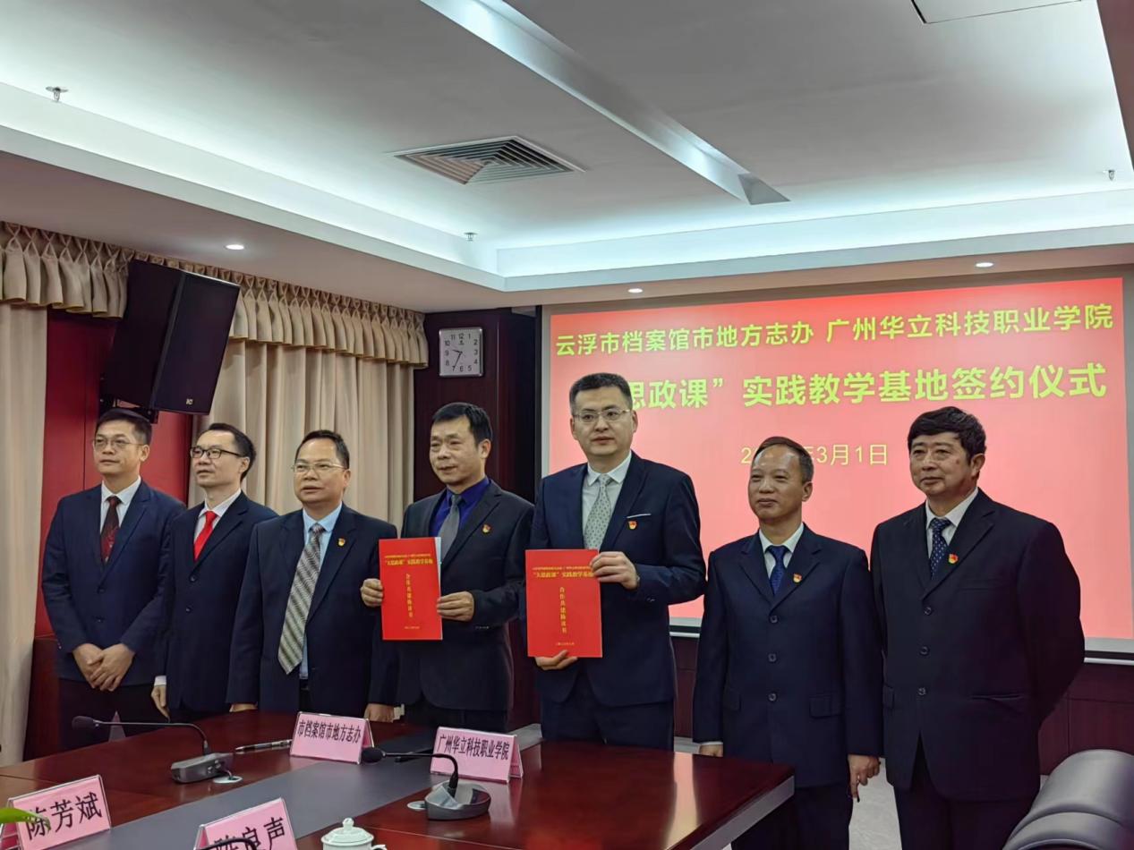 3月1日上午,廣州華立科技職業(yè)學(xué)院“大思政課”教育實踐基地簽字揭牌儀式在云浮市檔案館舉行。易健民校長、云浮市檔案館館長陳芳斌等領(lǐng)導(dǎo)全程參與,陳良聲書記在基地揭牌儀式上致辭,張劍鋒校長助理代表校方在合作共建協(xié)議書上簽字。云浮校區(qū)馬克思主義學(xué)院教師、部分學(xué)生代表參加了揭牌儀式,云浮市委辦、云浮市教育局也派代表參加了上述活動。廣東省、云浮市多家媒體也進(jìn)行了現(xiàn)場采訪報道。