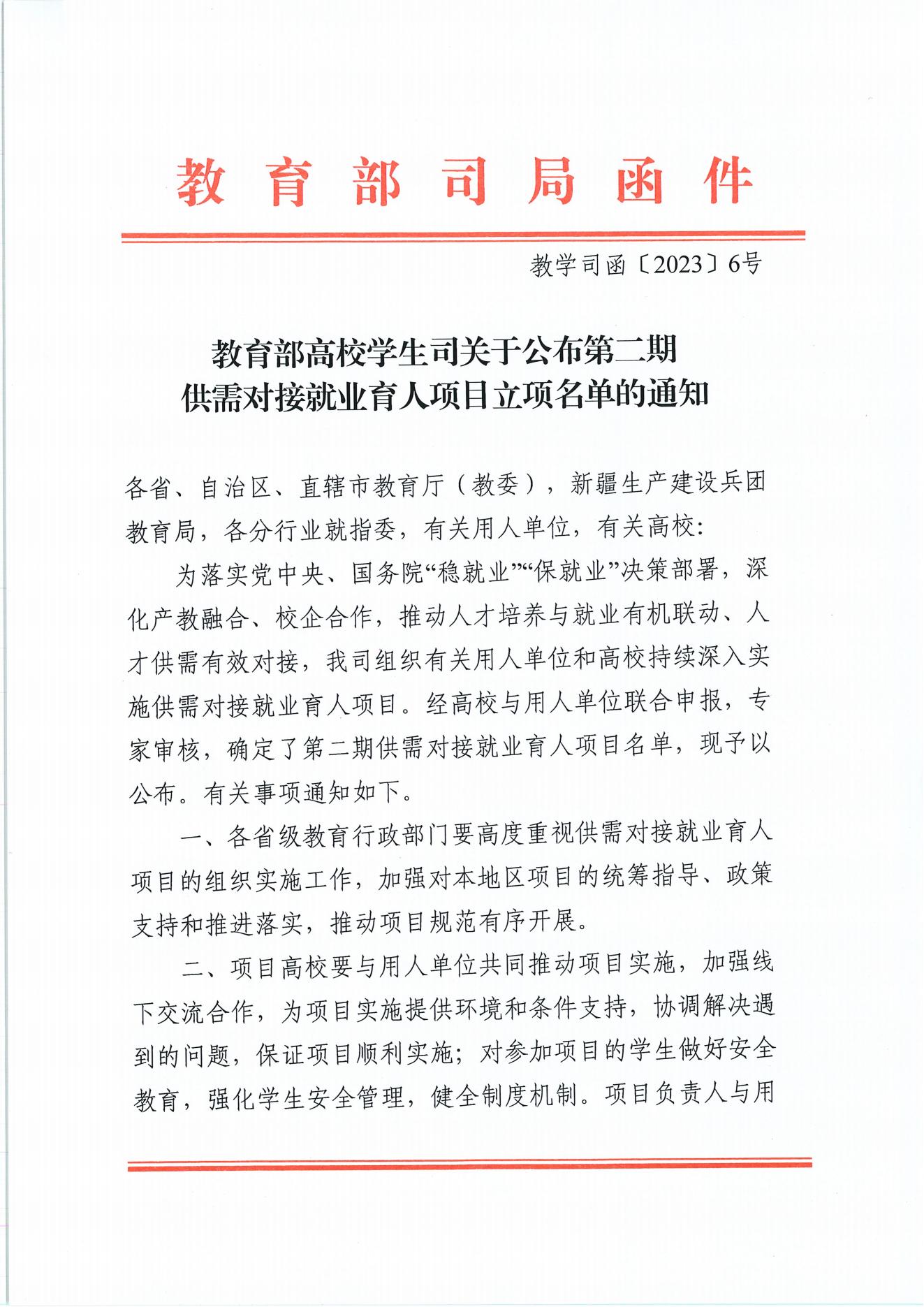 供需對接就業(yè)育人項(xiàng)目是教育部為落實(shí)黨中央、國務(wù)院“穩(wěn)就業(yè)”“保就業(yè)”決策部署,由教育部高校學(xué)生司組織發(fā)起,有關(guān)用人單位和高校共同實(shí)施,通過深化產(chǎn)教融合、校企合作,推動(dòng)高校人才培養(yǎng)與就業(yè)有機(jī)聯(lián)動(dòng)、人才供需有效對接,旨在促進(jìn)高校畢業(yè)生更加充分更高質(zhì)量就業(yè)的重要舉措。項(xiàng)目經(jīng)高校申請、用人單位申報(bào)、專家審核、立項(xiàng)單位信息核查,最終由教育部高校學(xué)生司公示立項(xiàng)名單及項(xiàng)目具體信息。