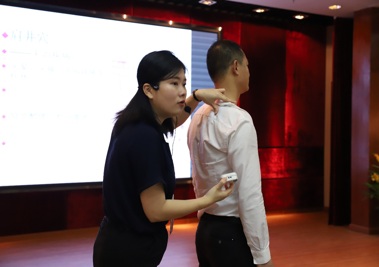 林老師講課形象生動,現(xiàn)場氣氛活躍,老師主動上臺模擬操作,配合演示。