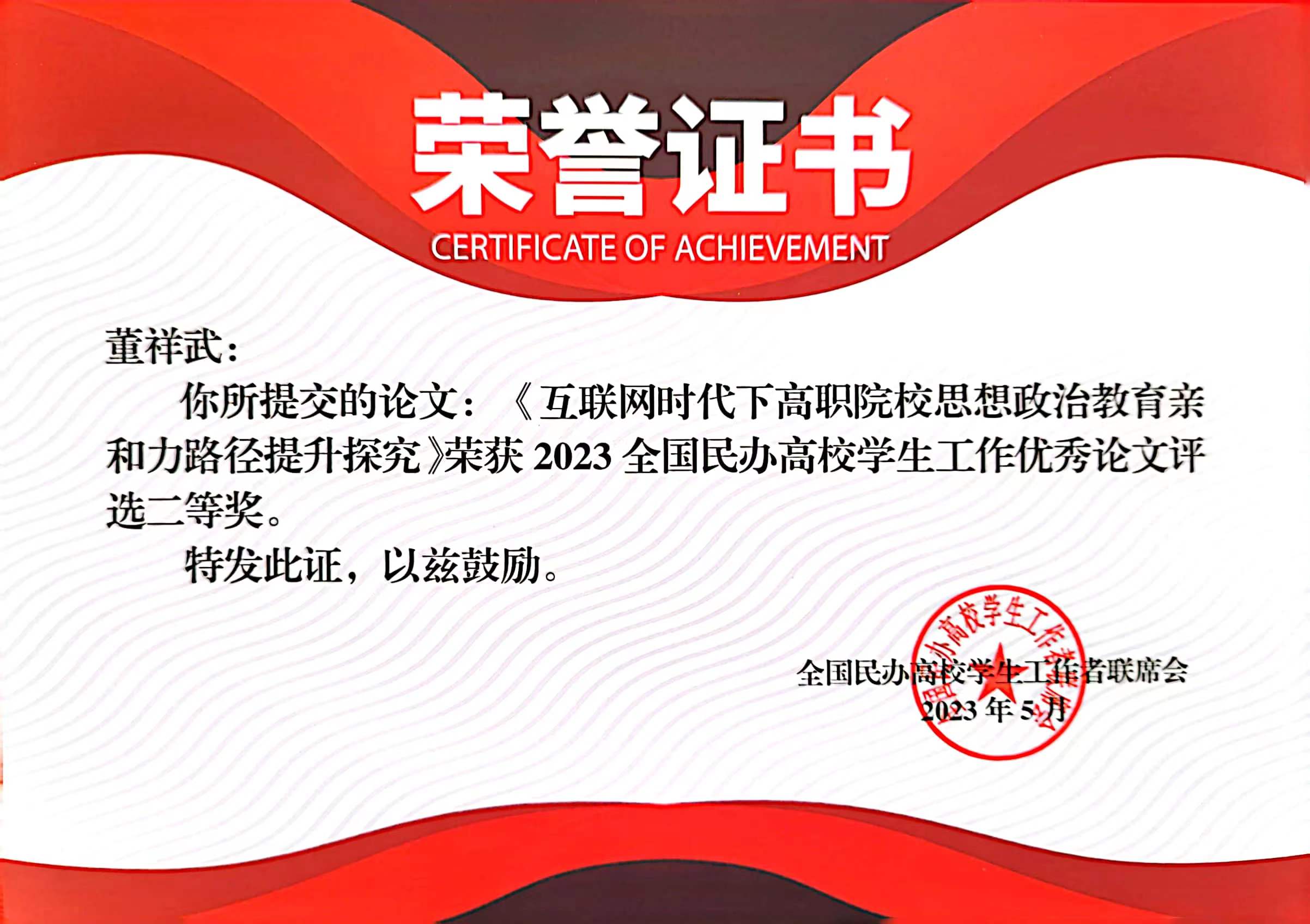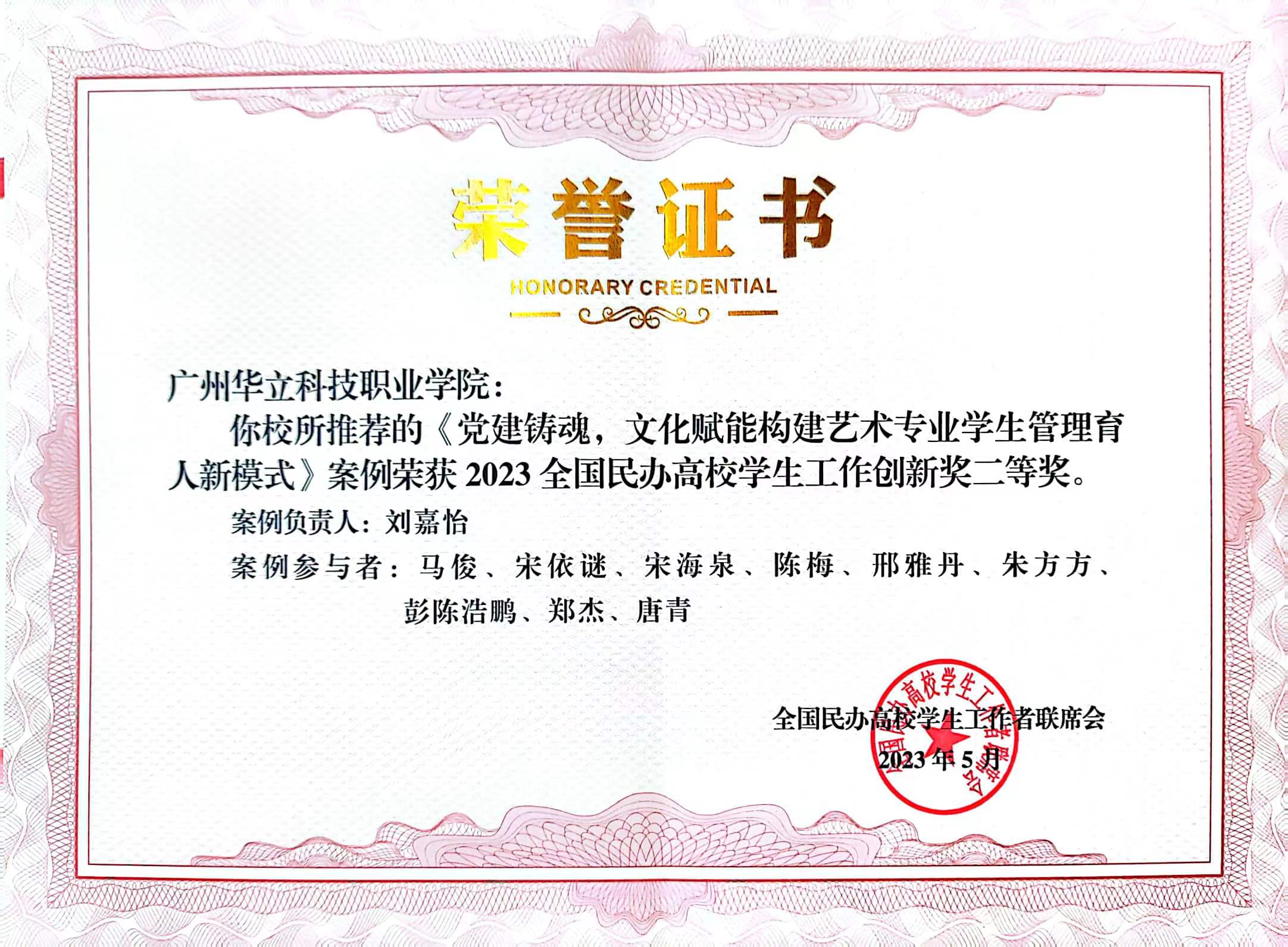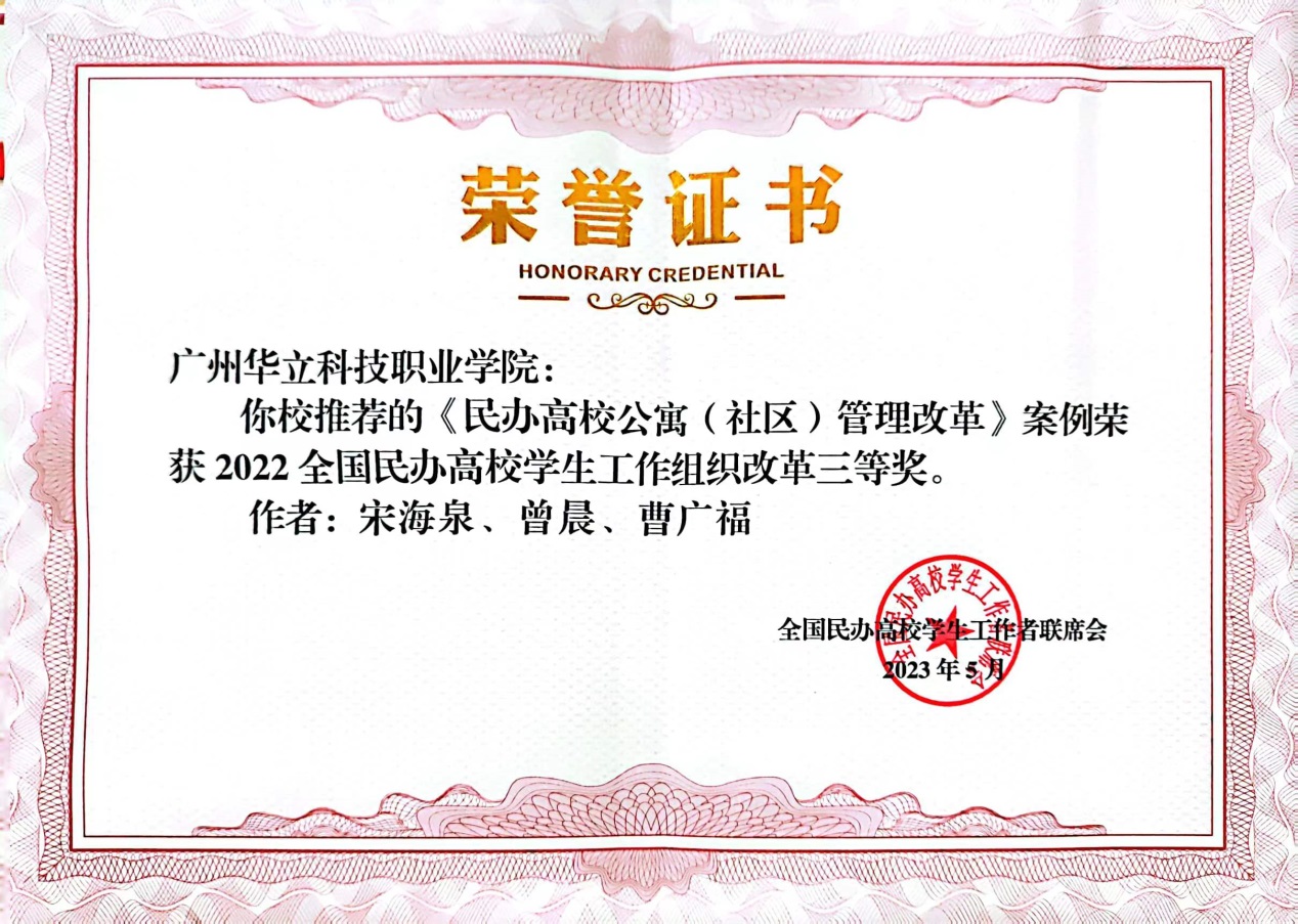 在本屆研討會中,我校學工團隊研究成果豐碩,獲得多項榮譽,其中藝術與傳媒學院學管負責人劉嘉怡老師主持的案例《黨建鑄魂,文化賦能構建藝術專業(yè)學生管理育人新模式》榮獲2023全國民辦高校學生工作創(chuàng)新獎二等獎。董祥武老師的創(chuàng)新論文《互聯(lián)網(wǎng)時代下高職院校思想政治教育親和力路徑提升探究》榮獲2023全國民辦高校學生工作優(yōu)秀論文評選二等獎。黨委學生工作部部長宋海泉老師主持的《民辦高校公寓(社區(qū))管理改革》案例、曹廣福老師主持的《基于網(wǎng)絡化治理的高校宿舍管理模式構建》案例分別榮獲2022全國民辦高校學生工作組織改革三等獎和二等獎。