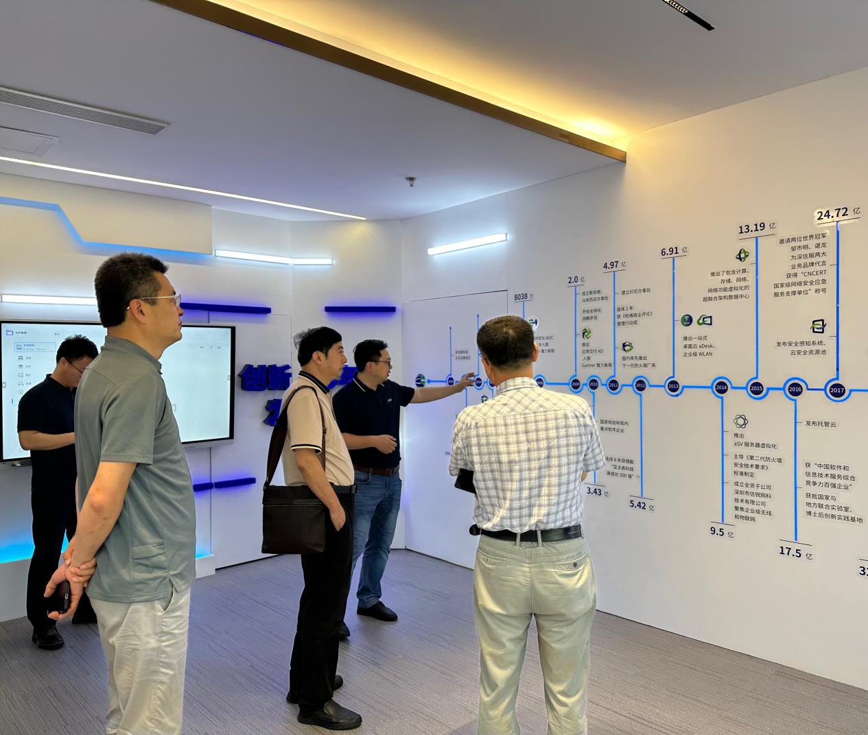 易健民、張劍鋒一行實地參觀、考察深信服廣州分公司,深入了解該公司發(fā)展歷程、產(chǎn)業(yè)布局、產(chǎn)教融合、校企合作聯(lián)合培養(yǎng)人才等方面基本情況。