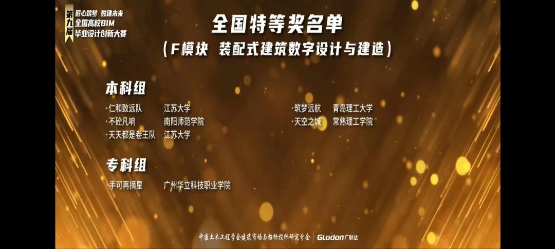 近日,第九屆全國高校BIM畢業(yè)設計創(chuàng)新大賽已經(jīng)落下帷幕,我校城建學院8支參賽隊伍共計參加了5個賽項,手可再摘星團隊在6月3日總決賽角逐下成功斬獲??平MF模塊唯一的特等獎!