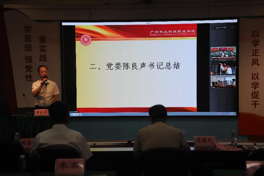 述職報(bào)告以黨委書記陳良聲代表學(xué)校領(lǐng)導(dǎo)班子做了總結(jié)。他指出,本次述職報(bào)告提出的內(nèi)容亮點(diǎn)突出,問題深刻,措施有力。報(bào)告內(nèi)容突出了兩校區(qū)之間工作的互相融合、學(xué)校事業(yè)發(fā)展與黨的建設(shè)相融合的特色,也反映了學(xué)校各部門、二級(jí)學(xué)院之間發(fā)展的不充分、不平衡的問題。同時(shí),感謝各位中層干部過去一年的辛苦付出,希望新學(xué)年大家一起繼續(xù)努力,并對(duì)此提出了五點(diǎn)希望:1.要以習(xí)近平總書記世界觀和方法論推動(dòng)學(xué)校發(fā)展;2.通過本次述職總結(jié)、全面梳理,進(jìn)一步揚(yáng)優(yōu)勢(shì)、強(qiáng)弱項(xiàng)、補(bǔ)短板,全力推進(jìn)學(xué)校的可持續(xù)發(fā)展;3.各部門做好主題教育后續(xù)工作,把主題教育取得的成效轉(zhuǎn)化為推動(dòng)學(xué)??焖佟⒏哔|(zhì)量發(fā)展的強(qiáng)大動(dòng)力;4.各二級(jí)學(xué)院把黨建組織優(yōu)勢(shì)轉(zhuǎn)化為推動(dòng)學(xué)院事業(yè)發(fā)展的動(dòng)力;5.落實(shí)學(xué)校工作指南和工作規(guī)范,提高學(xué)校依法辦學(xué)、按章辦事能力,推進(jìn)學(xué)校法治化、規(guī)范化辦學(xué)水平。