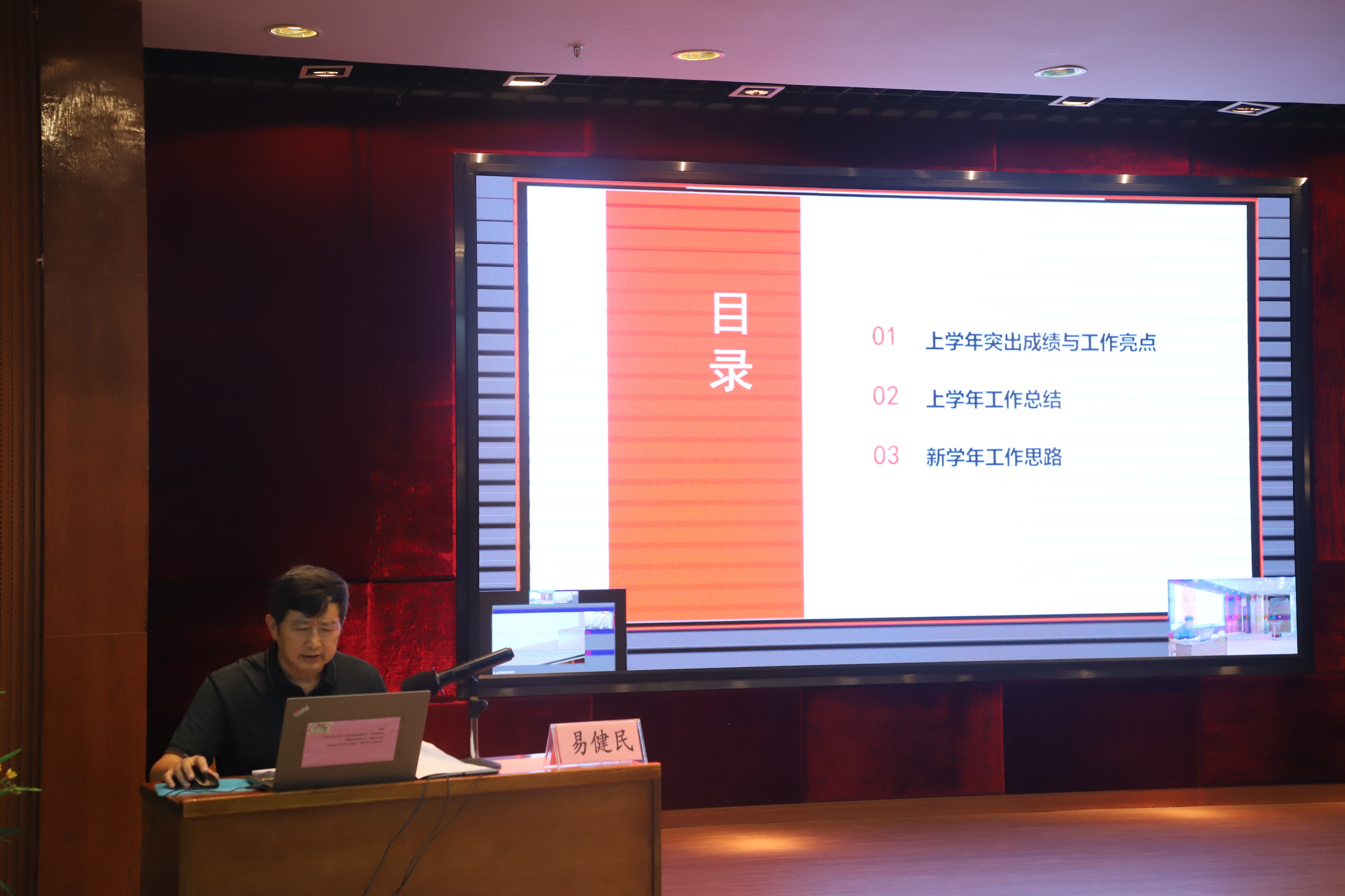 學(xué)校校長(zhǎng)、黨委副書記易健民首先作新學(xué)年工作講話。他指出,過(guò)去一學(xué)年,學(xué)校全面落實(shí)黨中央決策部署,學(xué)校領(lǐng)導(dǎo)班子帶領(lǐng)全體教職工緊扣學(xué)校發(fā)展目標(biāo),全體教師立足本職、兢兢業(yè)業(yè)、創(chuàng)新實(shí)干,創(chuàng)造了新業(yè)績(jī),斬獲了新的榮譽(yù),用實(shí)干和擔(dān)當(dāng)加快推進(jìn)了學(xué)校高質(zhì)量發(fā)展。