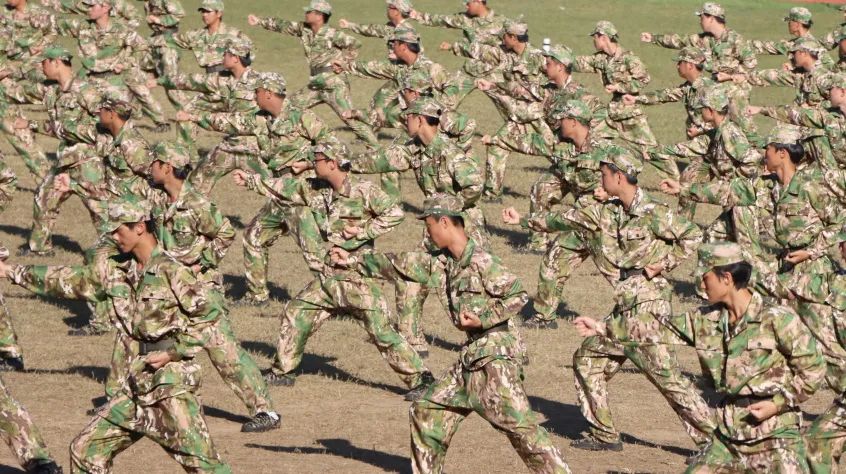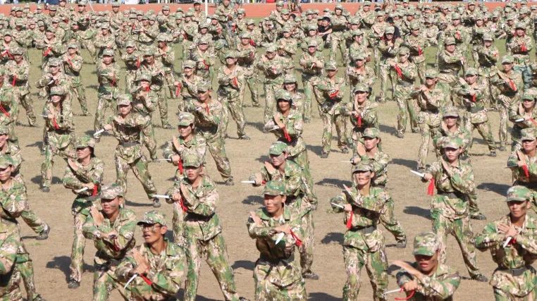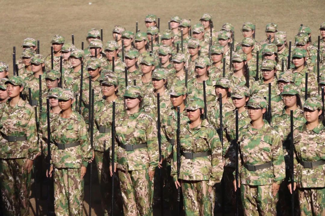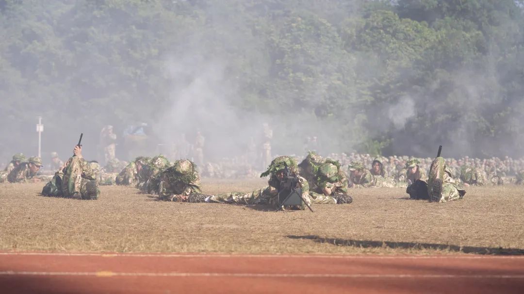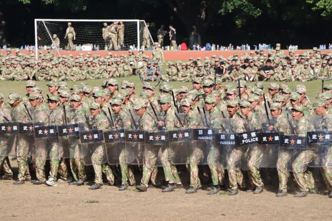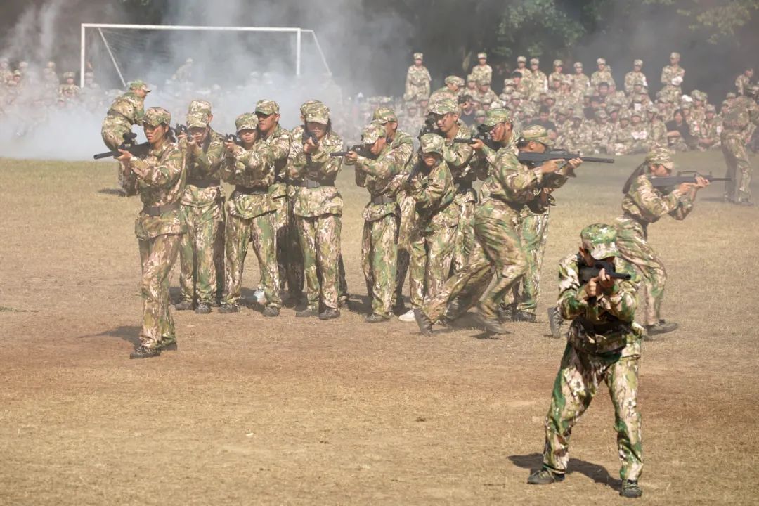 上午八時許,軍訓會操拉開序幕。2023級參訓新生按建制序列邁著整齊的步伐依次進行隊列表演、軍體拳、棍法匕、戰(zhàn)場與救護、警棍盾牌操、偽裝與防護、擒敵拳、匕首操、防爆隊形等訓練科目表演,同學們精神飽滿、隊列整齊、步伐堅定、號聲嘹亮、姿態(tài)標準、氣勢如虹;響亮的口號,洋溢鮮活的青春力量,充分展示了華立學子斗志昂揚、意氣風發(fā)的精神風貌和軍訓取得的豐碩成果。