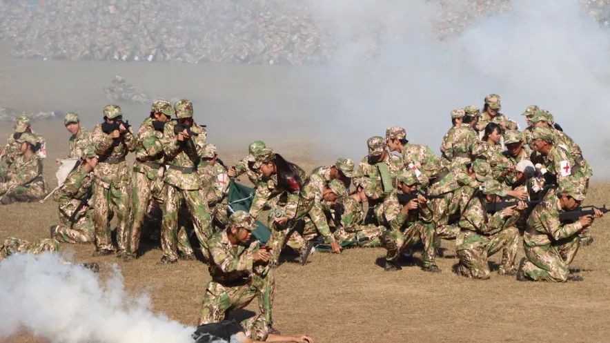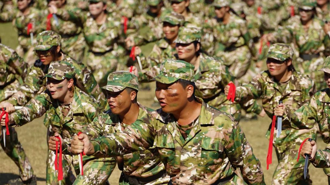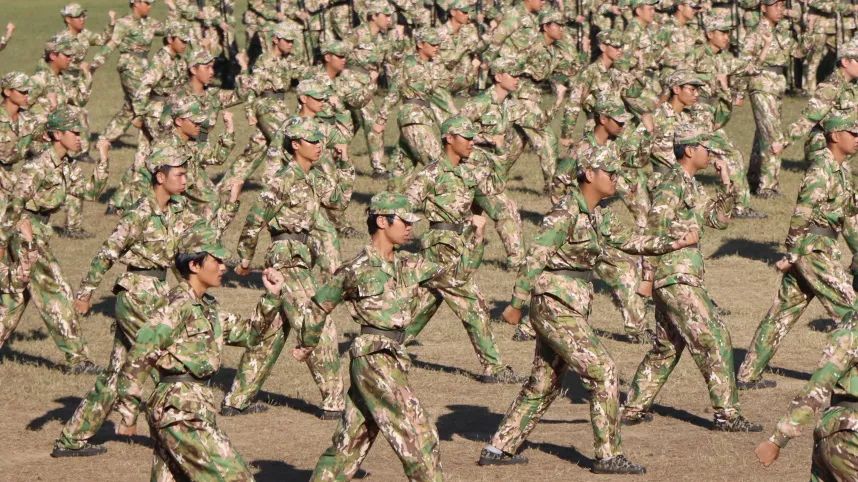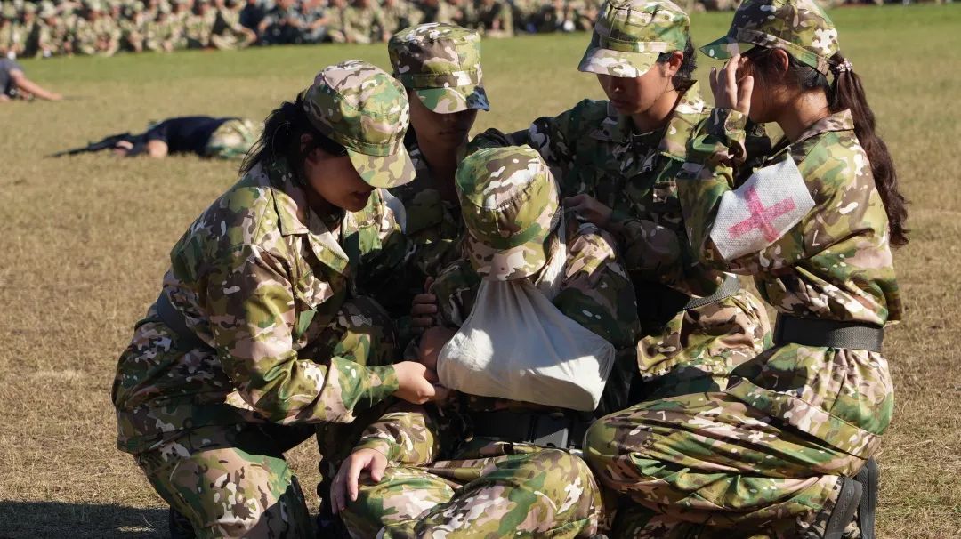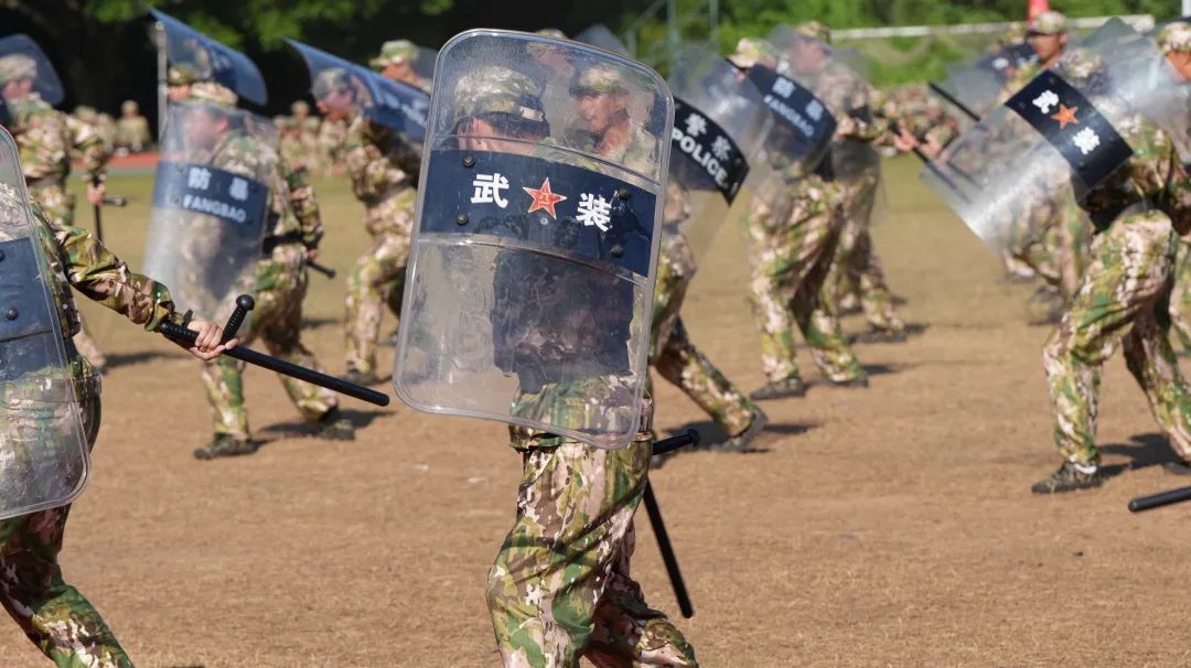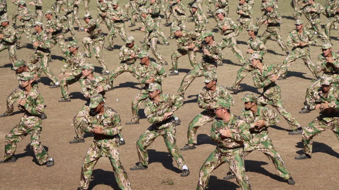 上午八時許,軍訓會操拉開序幕。2023級參訓新生按建制序列邁著整齊的步伐依次進行隊列表演、軍體拳、棍法匕、戰(zhàn)場與救護、警棍盾牌操、偽裝與防護、擒敵拳、匕首操、防爆隊形等訓練科目表演,同學們精神飽滿、隊列整齊、步伐堅定、號聲嘹亮、姿態(tài)標準、氣勢如虹;響亮的口號,洋溢鮮活的青春力量,充分展示了華立學子斗志昂揚、意氣風發(fā)的精神風貌和軍訓取得的豐碩成果。