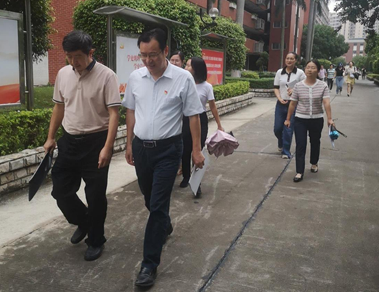 為進(jìn)一步落實(shí)習(xí)近平總書記關(guān)于加強(qiáng)高校思想政治理論課教育教學(xué)工作的指示精神,提高教學(xué)質(zhì)量和教研能力,把習(xí)近平新時(shí)代的育人思想運(yùn)用到整個(gè)思政課教學(xué)之中,推動(dòng)馬克思主義學(xué)院高質(zhì)量發(fā)展,10月18日下午,校長易健民教授率教學(xué)督導(dǎo)辦主任唐輝、教務(wù)處副處長曾英姿、學(xué)校辦公室副主任任志勇等一行,到馬克思主義學(xué)院現(xiàn)場辦公。馬克思主義學(xué)院院長廖良初以及全體思政課教師參加。易健民校長一行首先到西二棟203教室聽取了龍林老師的公開課,到馬克思主義學(xué)院各教研室了解思政課教研教改情況后,來到馬克思主義學(xué)院518會(huì)議室就如何深化課堂教學(xué)改革,提高教學(xué)質(zhì)量進(jìn)行現(xiàn)場辦公。