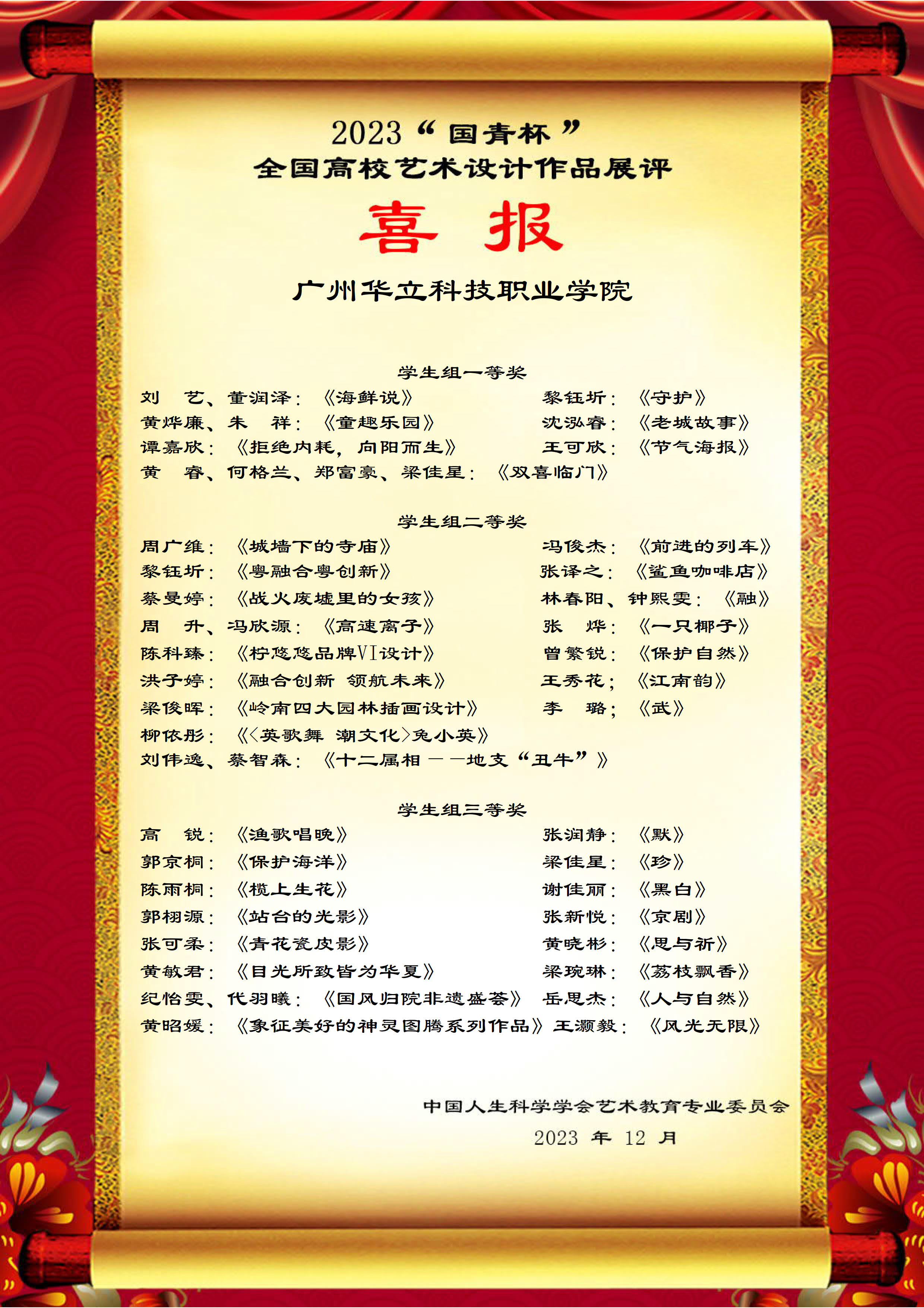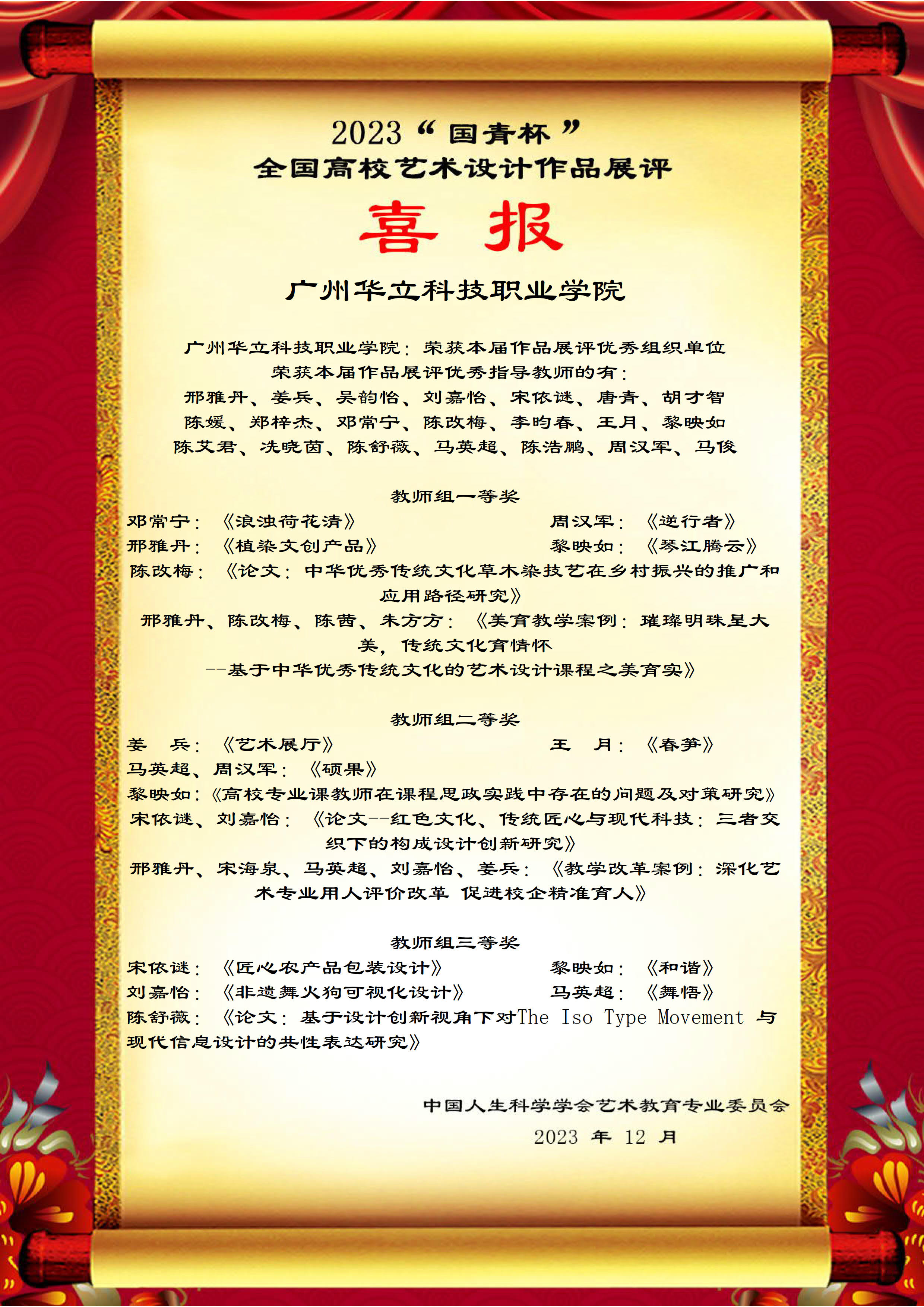 我校藝傳學院師生在2023“國青杯”全國高校藝術設計作品展評中喜獲佳績