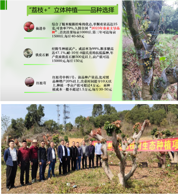 我校此次獲獎(jiǎng)案例為《荔枝+立體種植模式賦能鄉(xiāng)村振興》。2021年9月,《荔枝樹(shù)上種石斛》被廣東省科技廳立項(xiàng)為廣東省駐鎮(zhèn)幫鎮(zhèn)扶村農(nóng)村科技特派員項(xiàng)目,資助經(jīng)費(fèi)30萬(wàn)元,團(tuán)隊(duì)已在汕尾陸豐市推進(jìn)示范基地建設(shè)200余畝,學(xué)校所在地增城區(qū)白面石村、增城馬屋村、瓜嶺村等建立了多個(gè)推廣基地。項(xiàng)目已進(jìn)一步拓展成荔枝樹(shù)上種石斛、樹(shù)下種松茸、荔枝品種改良的立體經(jīng)濟(jì)模式。學(xué)校鄉(xiāng)村振興工作獲廣東省科學(xué)技術(shù)廳以《石斛花開(kāi)荔枝園,鄉(xiāng)村振興展風(fēng)采》在學(xué)習(xí)強(qiáng)國(guó)平臺(tái)上報(bào)道,2022年人民日?qǐng)?bào)和廣州日?qǐng)?bào)分別以《科技特派員團(tuán)隊(duì)助力革命老區(qū)白面石村鄉(xiāng)村振興工作》《圍觀!荔枝樹(shù)上種了名貴藥材》為題重點(diǎn)報(bào)道了我校鄉(xiāng)村振興新模式?!惰F皮石斛花開(kāi)荔枝果園,職業(yè)教育助力鄉(xiāng)村振興》入選中國(guó)職業(yè)技術(shù)教育學(xué)會(huì)《鄉(xiāng)村振興中國(guó)職教在行動(dòng)——職業(yè)教育服務(wù)鄉(xiāng)村振興典型案例》受到魯昕會(huì)長(zhǎng)的充分肯定和專題推介。