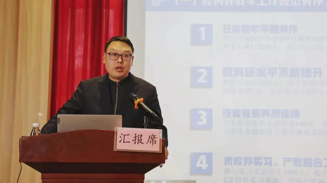 陳顯強副校長做報告時表示在上學(xué)期有質(zhì)量地完成日常和專項教學(xué)管理工作的基礎(chǔ)上,學(xué)校下一步將繼續(xù)加強和完善教學(xué)管理制度建設(shè)、人才培養(yǎng)方案制訂,推進校企合作、產(chǎn)教融合進一步落地落實取得更好成效,深化“三教”改革,培育教學(xué)成果。