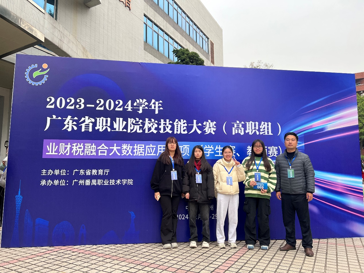 2024年3月2日,由省教育廳主辦的2023-2024年度廣東省職業(yè)院校技能大賽(高職組)“業(yè)財稅融合大數(shù)據(jù)應(yīng)用(學(xué)生賽)”賽項在廣州番禺職業(yè)技術(shù)學(xué)院舉行。全省有111支隊伍參加比賽,經(jīng)濟管理學(xué)院由林楚鈺、宋亦凡、陳康祺、胡若冰同學(xué)組成的參賽隊,在陳漢成和刁鏡林老師的精心指導(dǎo)下,參賽學(xué)生刻苦訓(xùn)練、配合默契,在眾多參賽隊伍中脫穎而出,榮獲省賽三等獎。