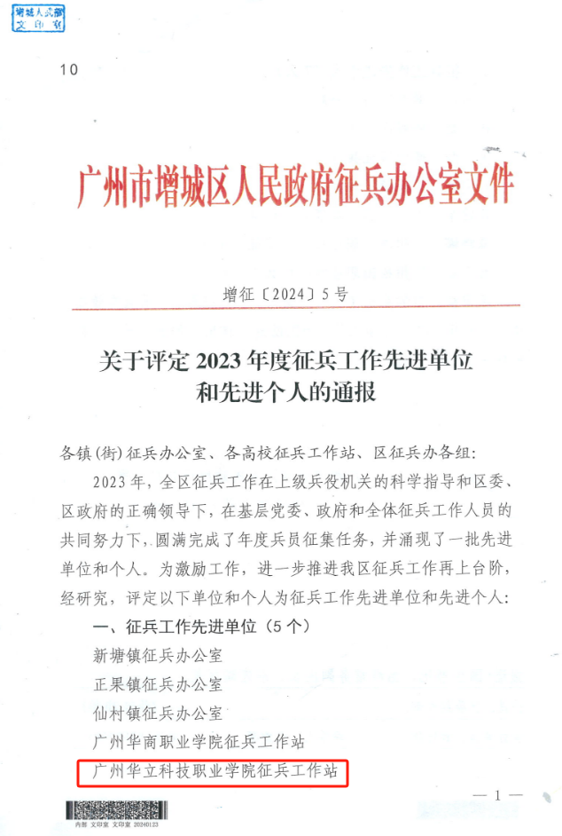 近日,我校征兵工作再次傳來喜訊,經(jīng)過層層評估,榮獲廣州市增城區(qū)2023年度“征兵工作先進單位”稱號,在2月27日的全省征兵工作會議中,我校大學生應(yīng)征入伍工作再次受到省教育廳、省征兵辦通報表揚,征兵工作得到了上級部門的充分肯定,這份榮譽不僅是對我校征兵工作的肯定,也是對每一位參與此項工作的師生的認可。