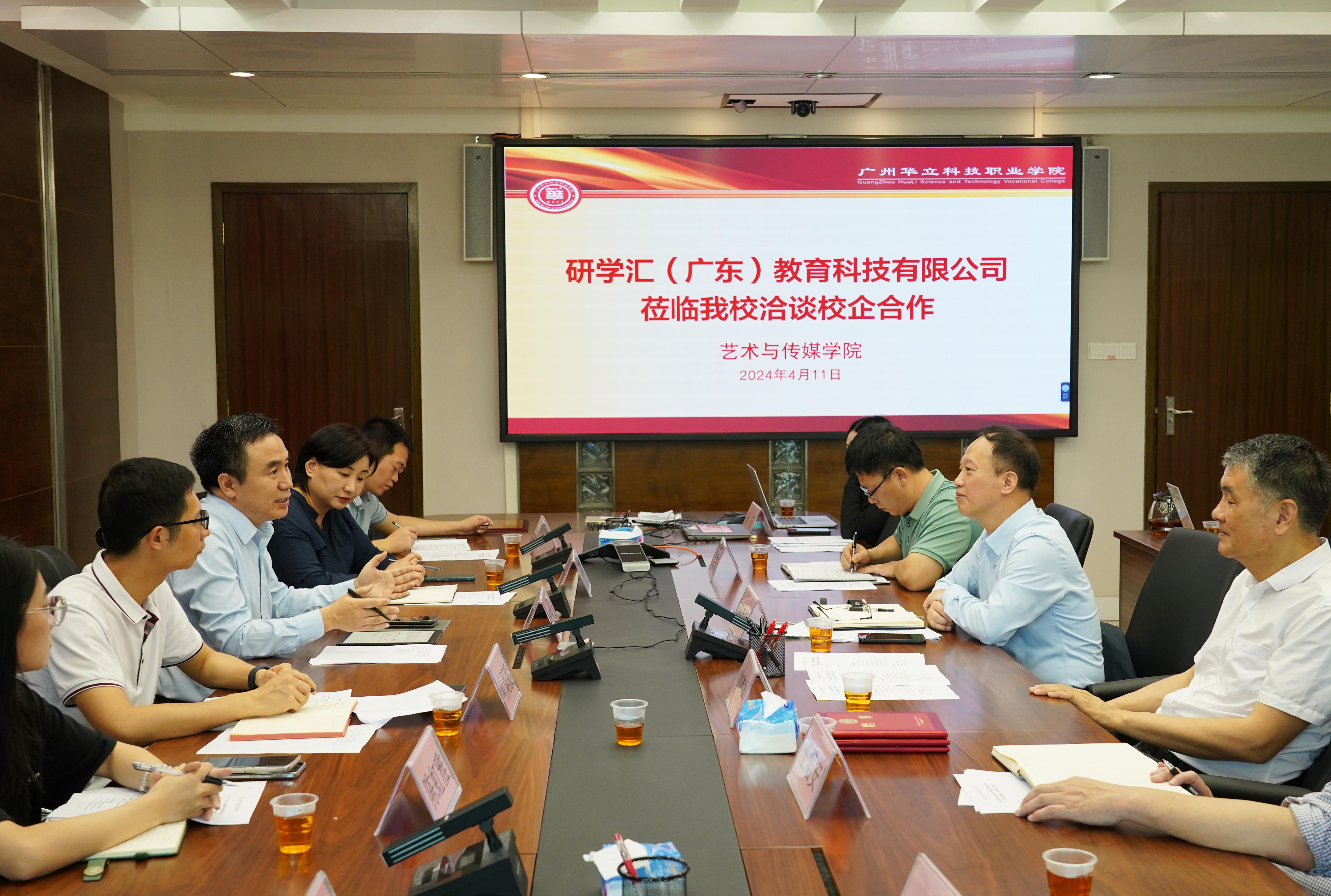 為推進(jìn)校企深度合作,提高職業(yè)教育質(zhì)量,助力實(shí)習(xí)生高質(zhì)量實(shí)習(xí)就業(yè)。4月11日研學(xué)匯(廣東)教育科技有限公司一行蒞臨我校洽談合作事宜,簽訂戰(zhàn)略合作協(xié)議,舉行實(shí)習(xí)實(shí)訓(xùn)基地授牌儀式。廣州華立科技職業(yè)學(xué)院校長(zhǎng)陳德清、黨委書記陳良聲,教務(wù)處副處長(zhǎng)陳茜、藝傳學(xué)院副院長(zhǎng)王焰安、產(chǎn)教融合辦副主任韋建林、藝傳學(xué)院相關(guān)老師,研學(xué)匯創(chuàng)始人杜連豐、秦紅巖、葉炳毅等人出席本次會(huì)議。