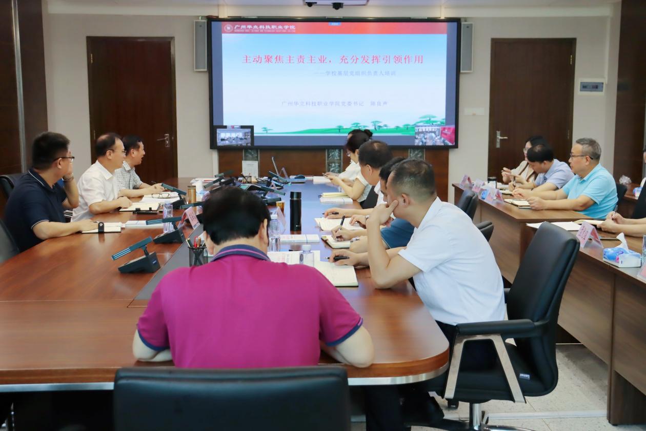 廣州華立科技職業(yè)學(xué)院于3月底順利完成了全?;鶎狱h組織的換屆工作,為了進(jìn)一步加強(qiáng)基層黨組織建設(shè),提升新一屆基層黨組織負(fù)責(zé)人的政治能力和黨務(wù)水平,4月17日上午,學(xué)校黨委書記陳良聲與全校新一屆基層黨組織負(fù)責(zé)人開展集體談話,并作了題為《主動(dòng)聚焦主責(zé)主業(yè),充分發(fā)揮引領(lǐng)作用》的業(yè)務(wù)培訓(xùn)報(bào)告,云浮校區(qū)以連線方式參加,黨委委員、組織部部長劉宇赤同志主持集體談話活動(dòng)和培訓(xùn)會(huì)議。